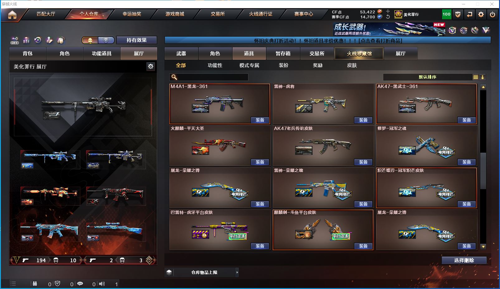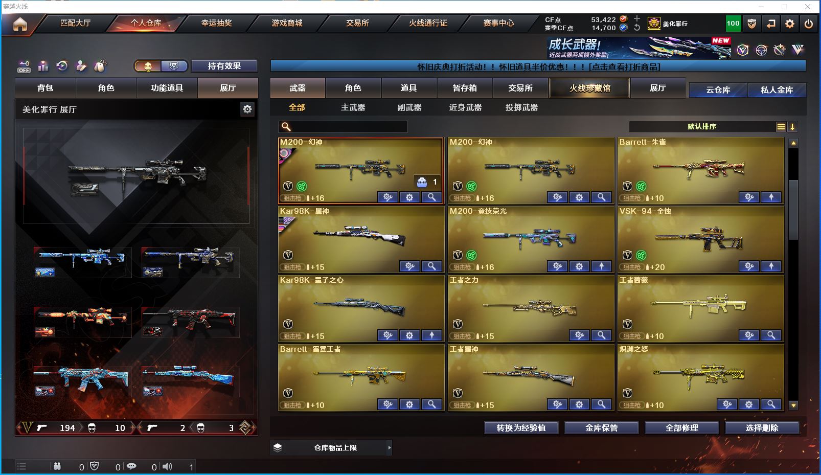 m27【吉林一区/175V/vip1/5传说】【传说女帝】【鹰/隼】【竞技荣光套/武圣套/6烈龙/6修罗】【M200-幻神*5/M200-幻神音效卡/幻神-宠儿-2021MVP/幻神-冠军之幻*2/幻神-纸灯龙皮肤】【M200-竞技荣光】【Kar98K-星神/Kar98K-星神音效卡/Kar98K-星神-冠军之星皮肤/星神-璀璨皮肤】【王者星神】【炽芒蝶刃*2】【Knife-冠军之刃】【G36C-幻影*2/VSK-94-金蚀】【柯尔特-冠军之特*7/柯尔特-无冕之王*3/柯尔特-竞技荣光/USP-雷暴*2/USP-雷暴王者*4/USP-神工天巧】【Scar Light-白虎/Scar Light-白虎音效卡/白虎-巅峰荣耀 皮肤*2/Scar Light-白虎-暗星/白虎-虎牙皮肤】【QBZ03-金色蔷薇/QBZ03-冠军之薇*2/QBZ03-巅峰荣耀皮肤】【QBZ03-天罚/QBZ03-天罚音效卡】【M4A1-雷神/M4A1-雷神音效卡/荣耀之魄-CFPL十周年臻藏版/雷神-荣耀之魄*2/雷神-暗月/雷神-能量核心/雷神-虎将】【Glock18-武圣/COP 357-雷霆王者/雷霆之契】【Barrett-毁灭/Barrett-毁灭音效卡/毁灭-荣耀之怒/毁灭-CFS2020/毁灭-星空/毁灭-斗鱼 皮肤/毁灭-暗月*2】【AK47-火麒麟*2/AK47-火麒麟音效卡/火麒麟-虎牙平台皮肤/火麒麟-大唐荣光/火麒麟-心动糖果/火麒麟-平天大圣】【M4A1-黑骑士*4】【M4A1-黑龙/M4A1-黑龙-361/黑龙-能量核心】【AK47-无影/无影-能量核心】【AK47-黑武士/AK47-黑武士-361】【AWM-天龙】【Barrett-极光/Barrett-极光音效卡】【AWM-裁决*3/AWM-裁决音效卡】【M4A1-死神/M4A1-千变/M4A1-千变-孔明皮肤】【汤姆逊-烈龙*6/烈龙-星空】【加特林-炼狱*4】【斯泰尔-蝴蝶】【沙鹰-修罗*9/修罗-冠军之魂/修罗-能量核心】【沙鹰-天神】【麒麟刺】【擎天/擎天-虎牙平台皮肤/擎天-竞技荣光】【屠龙*4/屠龙-荣耀之锋*2/屠龙-星火燎原/屠龙-破浪逐光 皮肤*2】【龙啸*5】【电竞教官-云悠悠/王者春/炫/研/王者-魅影/王者玲珑/雨棠/审判者/幽/雪莉杨/斯沃特-X/铁骑荣耀/幻影/堕天使】【M4A1-雷霆王者/M4A1-玫瑰精灵/M4A1-龙血/M4A1-雷霆/M4A1-武圣】【AK-47-猩红传说】【AA-12-雷霆*4/天启-暗月】【AN94-超新星】【Barrett-雷霆王者/Barrett-朱雀】【Colt 1911-大黄蜂】【雷霆王者之锋】【冰龙粉碎者-白马银枪】【COP-旗袍】【王者蔷薇/王者之心/王者之戮/王者火魄】【高爆手雷-竞技荣光/闪光弹-竞技荣光/烟雾弹-竞技荣光】【高爆手雷-雷霆*7/闪光弹-雷霆*7/烟雾弹-雷霆*7】【高爆手雷-雷霆王者/闪光弹-雷霆王者*3/烟雾弹-雷霆王者*2】【闪光弹-神工天巧*6/烟雾弹-神工天巧*6】【高爆手雷-雷暴王者*7】【炫金骑士】【透明头盔/烟雾保护头盔/闪光护目镜/超级对讲机/超级背包/防弹头盔/防弹衣/C4工具钳/手雷包/防化服*3】