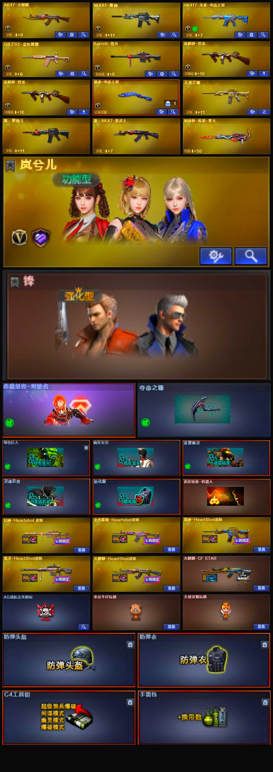 FH0238【湖北一区/11V/vip1】【幻神-Heartshot 皮肤】【QBZ03-金色蔷薇】【M4A1-雷神/雷神-HeartShot 皮肤】【Barrett-毁灭】【AK47-火麒麟/火麒麟-CFSTAR】【天龙-CFSTAR】【汤姆逊-烈龙*2】【修罗-CFSTAR】【岚兮儿/兔囡囡】【Colt1911-小故障】【王者之魄】【语音特效-生化/语音特效-机器人】【运动护目镜/超级对讲机/防弹头盔/防弹衣/C4工具钳/手雷包/防化服】
