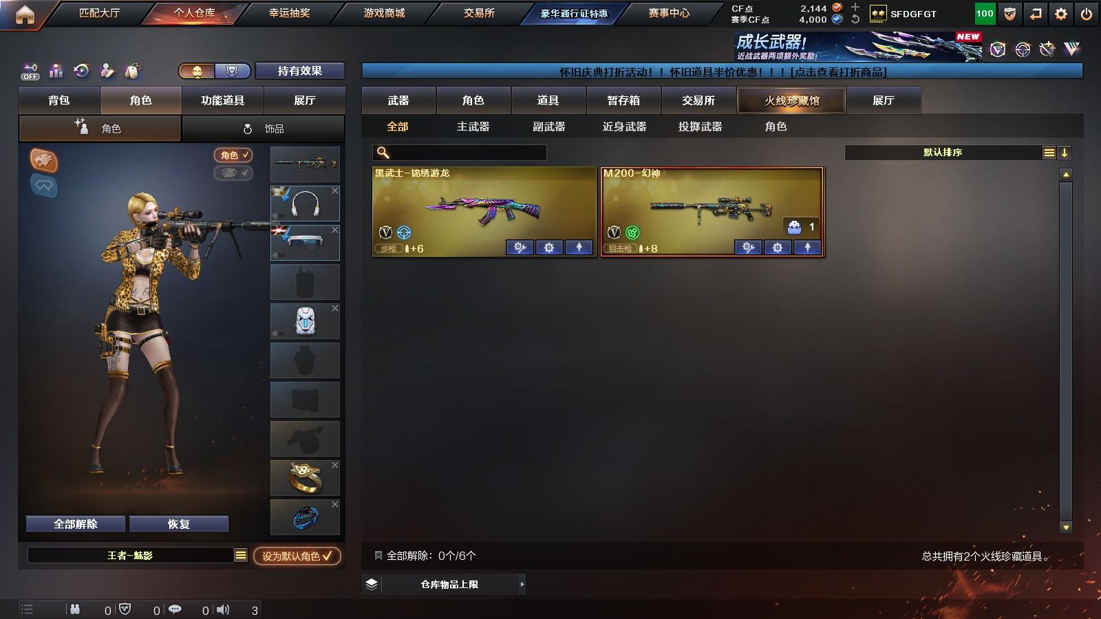 33978可排位可二次【河北一区/2V/vip4】【幻神带皮/王者风神/四防角色】【M200-幻神/幻神-电流骇客 皮肤】【王者风神】【黑武士-锦绣游龙】【王者-魅影/暗夜-X/木兰/乔伊教练/堕天使/复仇者】【Scar Light-像素】【猫猫手套】【防弹头盔2/防弹衣2/C4工具钳2/手雷包2/防化服2】截图展示段位不代表实际段位,如赛季更新等不/拒因素发生变化、时限道具不保证所剩时间