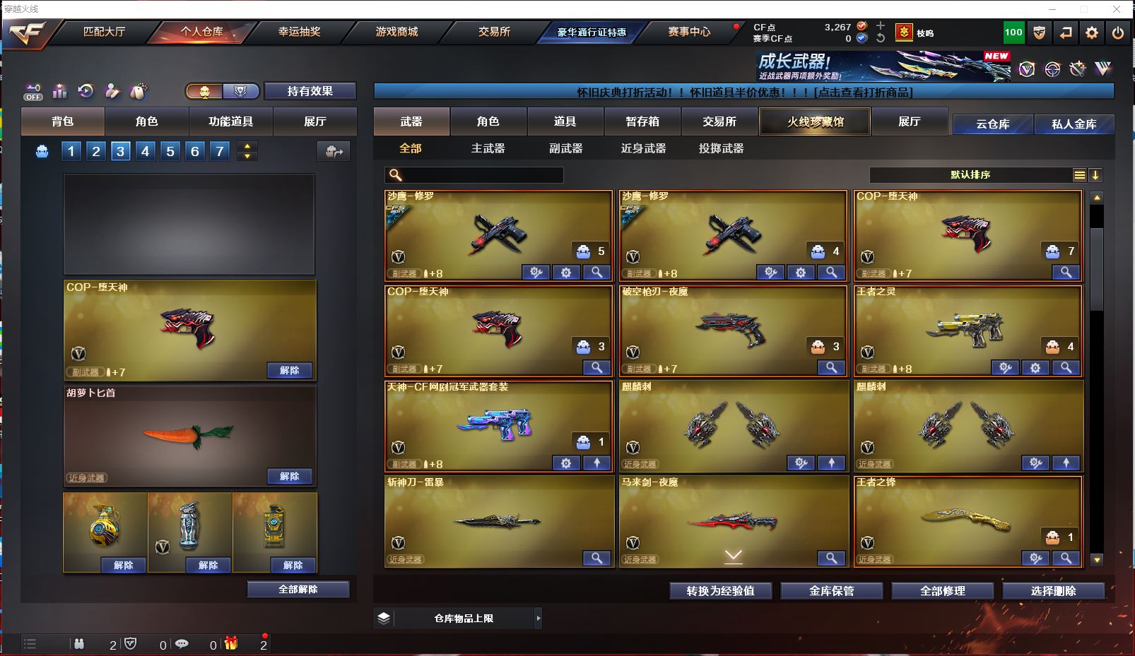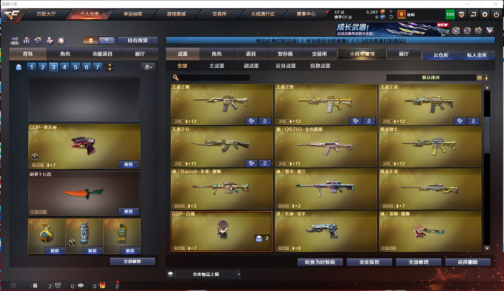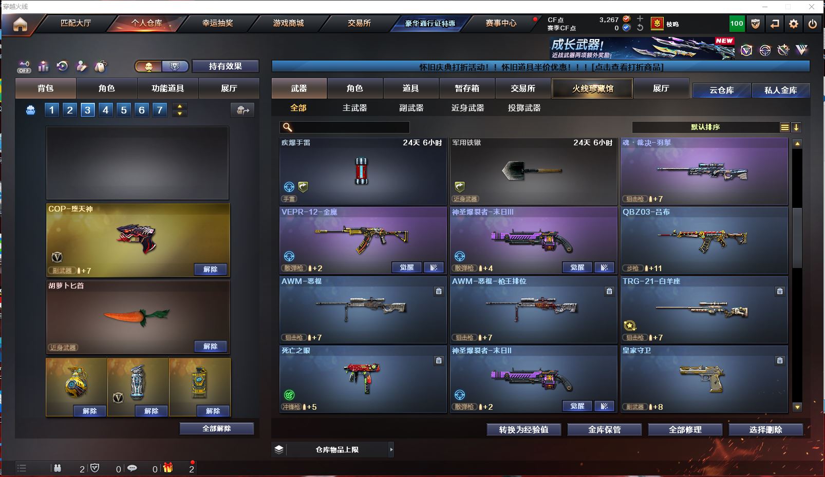 浙江一区 vip3 71V 【传说武器 传说女帝!!!】【M200幻神+周瑜皮肤+传说女帝】【98k星神】【王者幻神】【传说圣灵】【王者白虎】【qbz03金色蔷薇+金色蔷薇音效卡+CFPLS19冠军皮肤】【5烈龙+4盘龙+死亡之眼】【王者之魄 王者之势 王者之武 王者之心】【黑龙+黑龙音效卡+冠军之武皮肤】【雷神+雷神音效卡+荣耀之魄皮肤】【黑骑士+黑骑士音效卡】【毁灭+毁灭音效卡+冠军之怒皮肤】【千变 穹宇 王者之烈 裁决 巴雷特朱雀 巴雷特暗月传说 AA12雷暴】——【沙鹰修罗*3 cop堕天神 破空枪刃夜魔 王者之灵 天神CF网剧冠军武器套装】——【麒麟刺 斩神刀雷暴 马来剑夜魔 王者之锋 王者之啸 王者之击 擎天CF网剧冠军武器套装】——【雷暴投掷武器套装 夜魔投掷武器套装*7 】——【热门武器/小人枪】【炫金骑士 炫金天龙 cop白鲨】——【角色】【4防王者葵貂蝉】【传说女帝 凌霄 迷迭香 雨棠】【截图展示段位不代表实际段位,如赛季更新等不可抗拒因素发生变化、时限道具不保证所剩时间、标题未写送cf点默认不送】更多武器角色道具详情看图 ⭐️买号看《无忧》 售后放心无忧⭐️