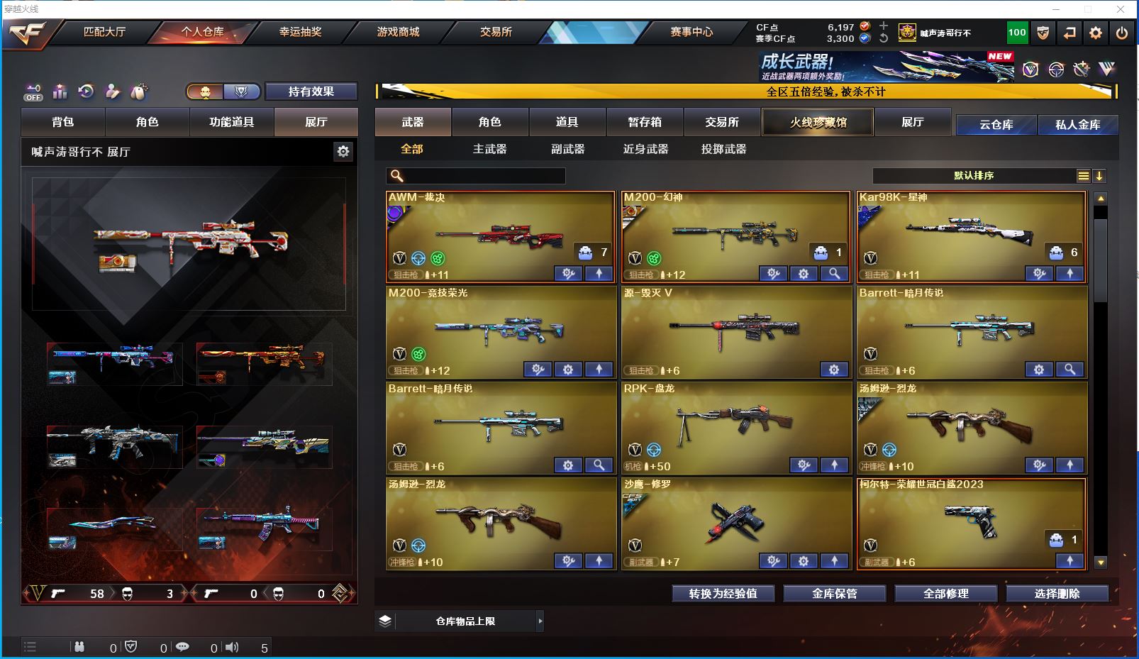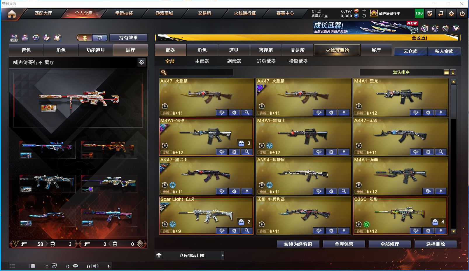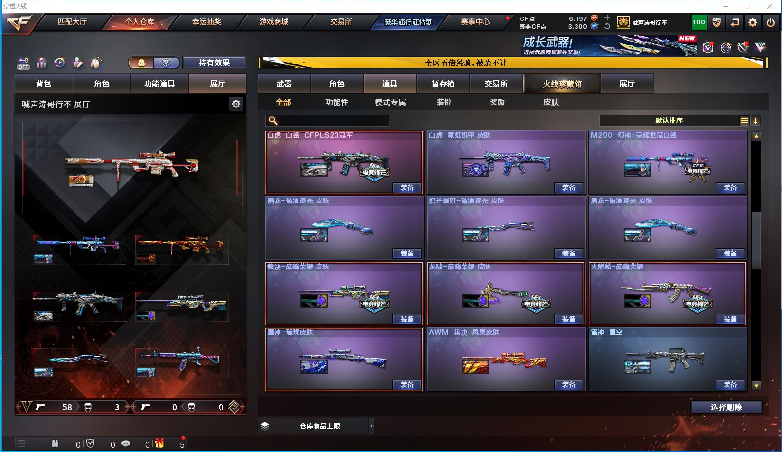 m14【吉林一区/64V/vip1】【M200-幻神/M200-幻神音效卡/M200-幻神-荣耀世冠白鲨/幻神-丹凤】【M200-竞技荣光】【Kar98K-星神/Kar98K-星神音效卡/星神-璀璨皮肤】【炽芒蝶刃/炽芒蝶刃-荣耀世冠白鲨2023 皮肤/炽芒蝶刃-破浪逐光 皮肤】【G36C-幻影】【柯尔特-冠军之特/柯尔特-荣耀世冠白鲨2023*2】【Scar Light-白虎/白虎-电玩粉兔皮肤/白虎-霓虹机甲 皮肤】【QBZ03-金色蔷薇/QBZ03-荣耀世冠白鲨/金色蔷薇-破浪逐光 皮肤】【M4A1-雷神/M4A1-雷神音效卡/雷神-荣耀之魄/M4A1-雷神-白鲨皮肤/雷神-传奇N9/雷神-炽焰魔龙/雷神-烈虎皮肤/雷神-耀金皮肤/雷神-星空/雷神-虎将】【Barrett-毁灭/毁灭-星空】【AK47-火麒麟*2/火麒麟-巅峰荣耀/AK47-火麒麟-传奇EVEN/火麒麟-CFSTAR/火麒麟-心动糖果/火麒麟-华夏之心/火麒麟-雷神/火麒麟-平天大圣】【M4A1-黑骑士/黑骑士-海王】【M4A1-黑龙】【AK47-无影/无影-神兵利器/无影-能量核心】【AK47-黑武士/AK47-黑武士-361】【AWM-天龙/AWM-天龙-传奇70KG】【AWM-裁决/AWM-裁决音效卡】【汤姆逊-烈龙*2/烈龙-星空】【RPK-盘龙】【沙鹰-修罗/修罗-CFSTAR】【麒麟刺】【擎天/擎天-竞技荣光】【屠龙*2/屠龙-荣耀之锋/屠龙-星火燎原/屠龙-春桃 皮肤/屠龙-破浪逐光 皮肤*2】【龙啸】【王者-魅影/暗夜-X/雾萌萌/星际战将/幽/木兰/妲己/娟娟/潘多拉-X/斯沃特-X/救世主-X/影武者-X/铁骑荣耀/新娜塔莎/幻影/复仇者】【M4A1-龙血】【AK47-B-身先士卒/AK47-B-战神/AK-47-猩红传说】【AN94-超新星】【Barrett-暗月传说*2】【Colt 1911-大黄蜂*2/新USP-枪王排位奖励*2】【金刚伞】【激光毁灭者III-白马银枪】【COP-白鲨/巴雷特-零-水下丽影】【王者之击/王者玉锋】【高爆手雷-竞技荣光*2/闪光弹-竞技荣光*2/烟雾弹-竞技荣光*3】【高爆手雷-堕天神/闪光弹-堕天神/烟雾弹-堕天神】【烟雾弹-荣耀世冠白鲨2023】【超级护目镜/烟雾保护头盔/闪光护目镜/超级对讲机/超级背包/防弹头盔*7/防弹衣*7/C4工具钳*4/手雷包*5/防化服*3】