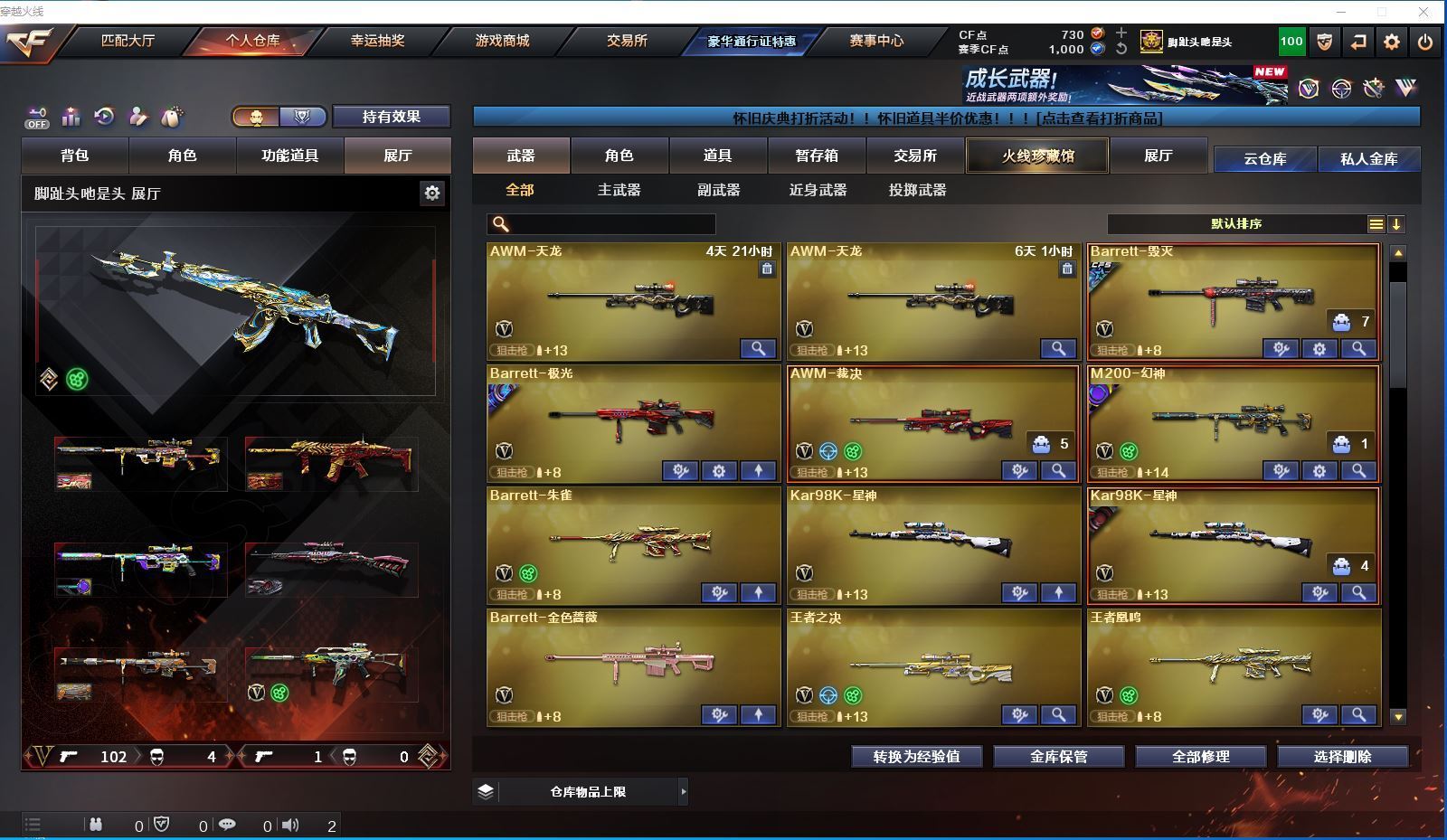 m7 特价全装精品天花板👇【福建一区/90V/vip1/1传说】【武圣套/6修罗】【M200-幻神/M200-幻神音效卡/幻神-巅峰荣耀/幻神-CFS2022/M200-幻神-黄忠皮肤】【Kar98K-星神2/Kar98K-星神音效卡】【王者之幻/王者白虎】【Knife-冠军之刃】【G36C-幻影】【柯尔特-冠军之特2】【Scar Light-白虎音效卡/白虎-大汉风骨】【QBZ-03-王者蔷薇/QBZ03-金色蔷薇2/QBZ03-金色蔷薇音效卡】【M4A1-雷神/M4A1-雷神音效卡/雷神-荣耀之魄/雷神-冠军之魄/雷神-R.LGD-CFPLS18冠军/雷神-杨戬2/雷神-星空/雷神-暗月/雷神-能量核心】【Glock18-武圣/COP 357-雷霆王者】【Barrett-毁灭/Barrett-毁灭音效卡/毁灭-荣耀之怒/毁灭-云海游龙皮肤/毁灭耀金皮肤】【AK47-火麒麟/AK47-火麒麟音效卡/火麒麟-巅峰荣耀/火麒麟-冠军之心/火麒麟-CFSTAR3/火麒麟-轻羽皮肤/火麒麟-平天大圣】【M4A1-黑骑士/M4A1-黑骑士音效卡/黑骑士-冠军之势/黑骑士-伏羲/黑骑士耀金皮肤】【M4A1-黑龙/黑龙-能量核心】【HK417-朱雀】【无影-神兵利器/无影-霓裳皮肤】【AK47-黑武士】【AWM-天龙2/天龙-CFSTAR3/天龙-能量核心】【Barrett-极光/极光-高能霹雳 皮肤】【AWM-裁决/AWM-裁决音效卡】【M4A1-死神】【汤姆逊-烈龙/烈龙-云海游龙】【加特林-炼狱2】【死亡之眼/迷你生化手雷】【沙鹰-修罗7/修罗-CFSTAR3/修罗-冠军之魂3/修罗-星空4】【沙鹰-天神】【麒麟刺】【擎天/擎天-云海游龙音效卡/擎天-冠军之击/擎天-云海游龙/擎天-惨叫迹】【屠龙4/屠龙-云海游龙】【龙啸/龙啸-堕天神】【王者沙漠玫瑰/职业选手/王者春/炫/关小雨/王者凌霄/王者-迷迭香/王者-葵-貂蝉/王者-零-国色天香/雨棠/龙儿/暗夜-X/灵动武士/堕落女神/幽/木兰/云海玲珑/乔伊教练/修道士/紫霞/娟娟/潘多拉-X/影武者-X/铁骑荣耀/新娜塔莎/幻影/堕天使/复仇者】【M4A1-雷霆王者/M14EBR-玄武/M4A1-玫瑰精灵/M4A1-武圣】【白虎-电玩蓝兔/Scar Light-像素/AK47-B-战神/AK-47-猩红传说】【AN94-超新星2】【Barrett-雷霆王者/Barrett-朱雀】【Colt 1911-大黄蜂/COP 357-青龙/新USP-枪王排位奖励3】【雷霆王者之锋/金刚伞-电玩红兔】【机甲撕裂者III/激光毁灭者III】【斯泰尔-巧克力】【猫猫手套/雷神-小红/COP-旗袍/火麒麟-灵狐2/巴雷特-零-水下丽影/迷你宝贝/天龙-曼陀罗/海滩汪汪-巴雷特/夺魂】【王者凰鸣/王者森决/王者森决/王者之心/王者之决/王者之魂/王者玉锋】【手雷-云海游龙】【高爆手雷-雷暴/闪光弹-雷暴】【高爆手雷-雷霆王者2/闪光弹-雷霆王者/烟雾弹-雷霆王者】【高爆手雷-堕天神2/闪光弹-堕天神2/烟雾弹-堕天神2】【高爆手雷-神工天巧/闪光弹-神工天巧/烟雾弹-神工天巧】【高爆手雷-幻灵3/闪光弹-幻灵3/烟雾弹-幻灵3】【炫金超新星/炫金天龙】【白鲨语音包/枪娘语音包-阿敏/语音特效-云海游龙/语音特效-机器人】【超级护目镜/透明头盔/透明护目镜/运动护目镜/超级对讲机/超级背包/炫彩背包/防弹头盔6/防弹衣6/C4工具钳6/手雷包6/防化服3】