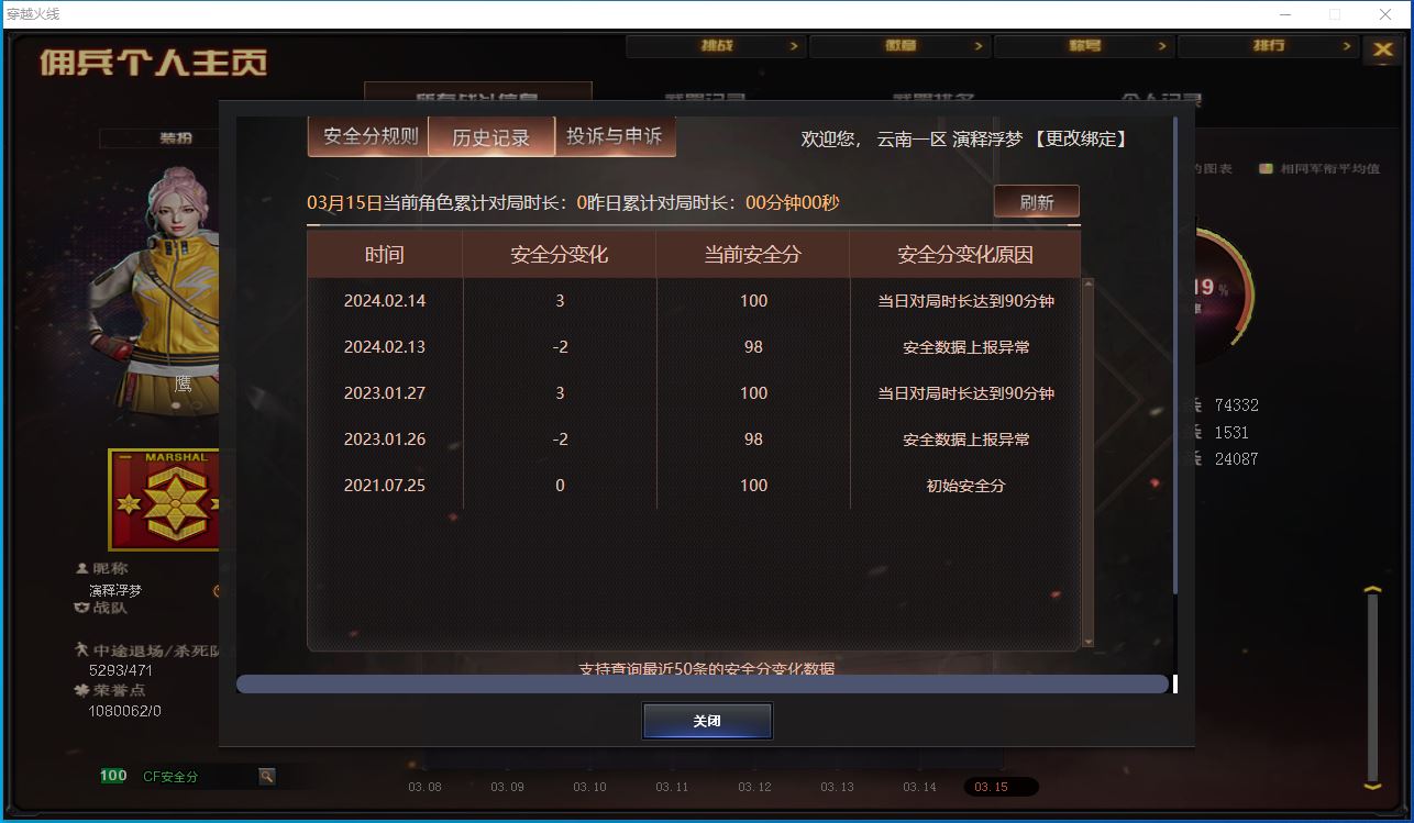 游戏大区:云南 西部战区