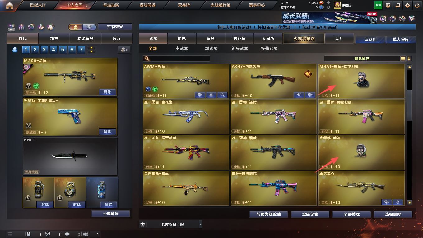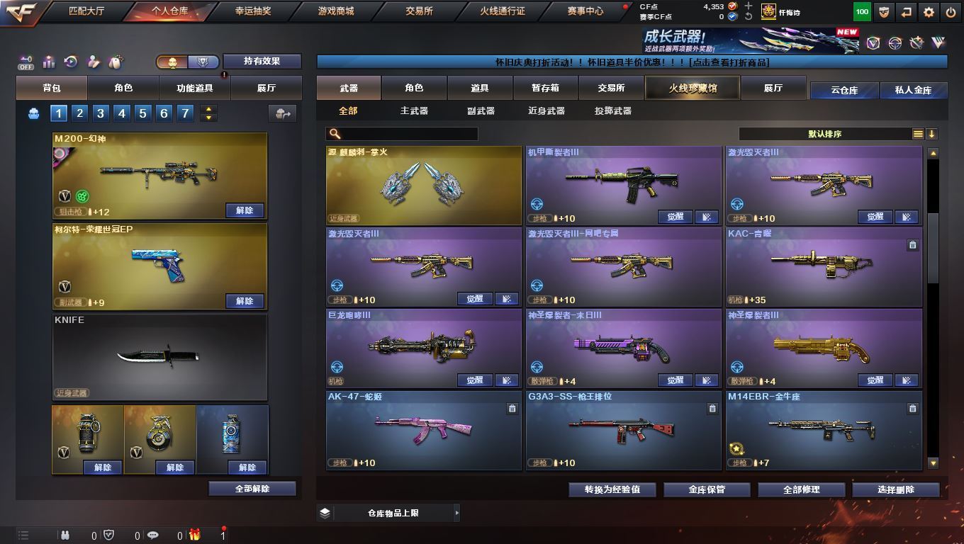 湖南一区 135v vip6 【幻神6皮带卡 白虎3件套!!!】【m200幻神+幻神音效卡+宠儿皮肤+冠军之幻皮肤+ags17冠军皮肤+巅峰荣耀皮肤+周瑜皮肤+黄忠皮肤+usp雷暴+王者幻神】【98k星神+王者星神+柯尔特荣耀世冠ep】【传说暗裔 传说梦魇】【m200竞技荣光套装】【6盘龙+6烈龙+1炼狱+斯泰尔蝴蝶】【白虎+白虎音效卡+电玩粉图皮肤】【qbz03金色蔷薇+荣耀世冠ep皮肤】【雷神+雷神音效卡+宠儿皮肤+荣耀之魄皮肤+冠军之魄皮肤】【毁灭+毁灭音效卡+荣耀之怒皮肤】【火麒麟+火麒麟音效卡+冠军之心皮肤】【黑骑士+黑骑士音效卡+冠军之势皮肤】【黑龙+黑龙音效卡+冠军之武皮肤】【极光+极光音效卡】【荣耀世冠套装】【雷霆王者套装】【火麒麟 黑龙 雷神 黑骑士 无影 死神 黑武士 天启 超新星 机械迷城 朱雀 玫瑰精灵 黑骑士海王 天龙 毁灭 极光 裁决 巴雷特朱雀 巴雷特金色蔷薇】——【热门武器/小人枪】【雷神精英刀锋 火麒麟绝迹 斯泰尔蝴蝶 黄金猫猫手套白鲨】【usp雷暴 柯尔特荣耀世冠ep 荣耀世冠柯尔特 cop堕天神 cop幻灵 cop雷霆王者 修罗 天神 天神网剧冠军 】【屠龙 擎天 麒麟刺 斩神刀雷暴 麒麟刺堕天神 龙啸堕天神 幻灵之锋 擎天竞技荣光 王者之锋 王者之啸 王者之击 擎天网剧冠军 荣耀世冠龙啸 雷霆王者之锋】——【雷暴投掷套装*3】【幻灵投掷套装*2】【雷霆王者投掷套装】【堕天神投掷套装*5】——【角色】【4防雨棠 王者春 王者玲珑小乔 灵狐者职业经理 女战神】【葵 迷迭香 司雨 魅影】【截图展示段位不代表实际段位,如赛季更新等不可抗拒因素发生变化、时限道具不保证所剩时间、标题未写送cf点默认不送】更多武器角色道具详情看图 ⭐️买号《无忧》 售后放心无忧⭐️】