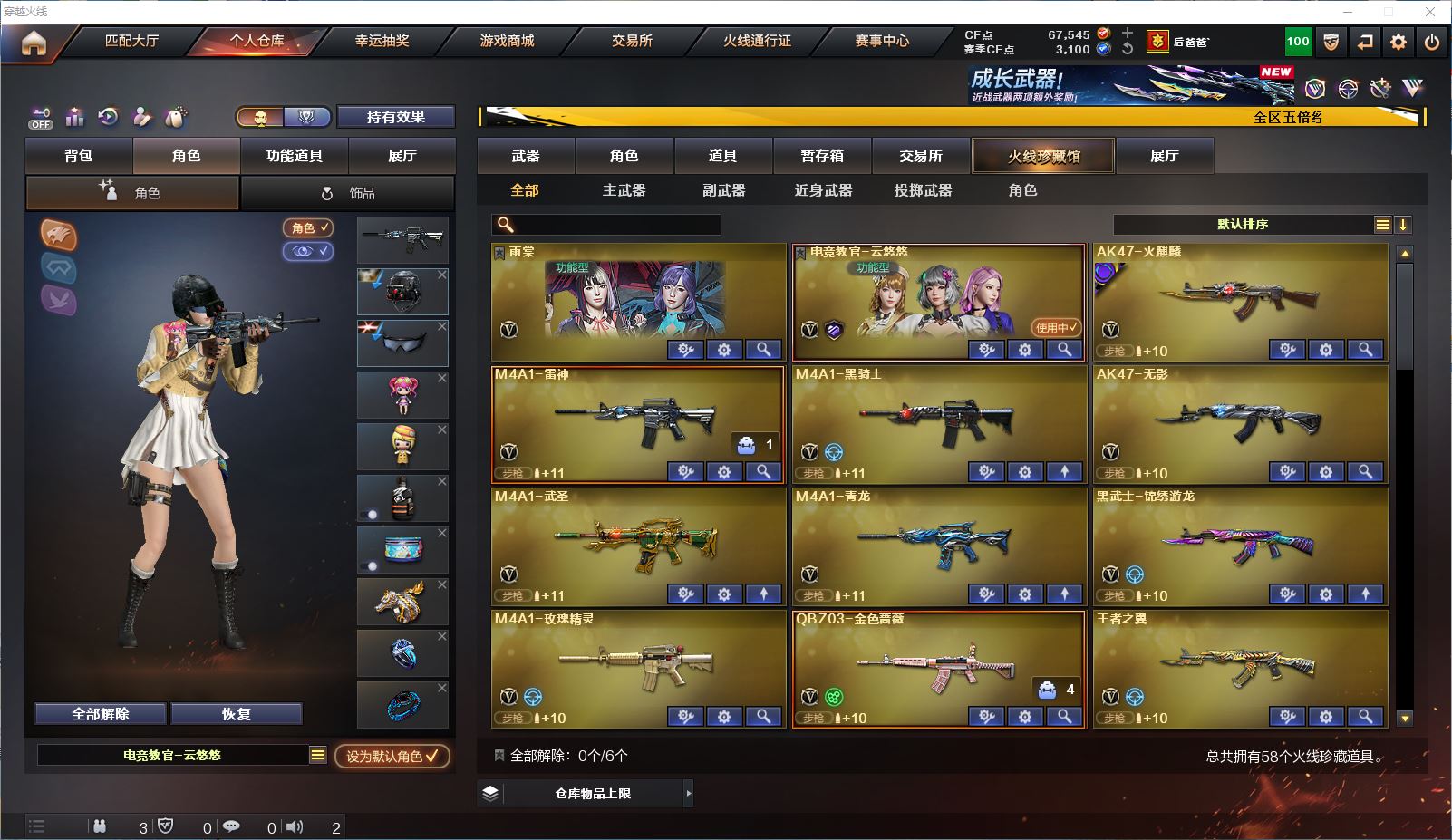 山西一区 vip6 58V 【M200竞技荣光套装+usp雷暴+4防云悠悠】【王者星神】【白虎电玩蓝兔】【5烈龙+盘龙+死亡之眼】【qbz03金色蔷薇+金色蔷薇音效卡】【火麒麟+火麒麟音效卡+巅峰荣耀皮肤】【雷神+雷神音效卡】【黑骑士+黑骑士音效卡】【无影 武士 青龙 黑武士锦绣游龙 源雷神III 玫瑰精灵 王者之翼 猩红传说 战神 黑骑士海王 天龙 毁灭 王者之力 巴雷特暗月传说 AA12雷霆】——【usp雷暴 沙鹰修罗 沙鹰天神 武圣 柯尔特竞技荣光 王者之灵】——【屠龙 擎天 麒麟刺 斩神刀雷暴 擎天竞技荣光】——【雷暴投掷武器套装 电竞装甲投掷武器套装 竞技荣光投掷武器套装】——【热门武器/小人枪】【火麒麟灵狐 金色蔷薇冠军安徽 炫金雷神 炫金毁灭 金刚伞电玩红兔】——【角色】【4防云悠悠】【雨棠 奇洋探员】【截图展示段位不代表实际段位,如赛季更新等不可抗拒因素发生变化、时限道具不保证所剩时间、标题未写送cf点默认不送】更多武器角色道具详情看图 ⭐️买号看《无忧》 售后放心无忧⭐️