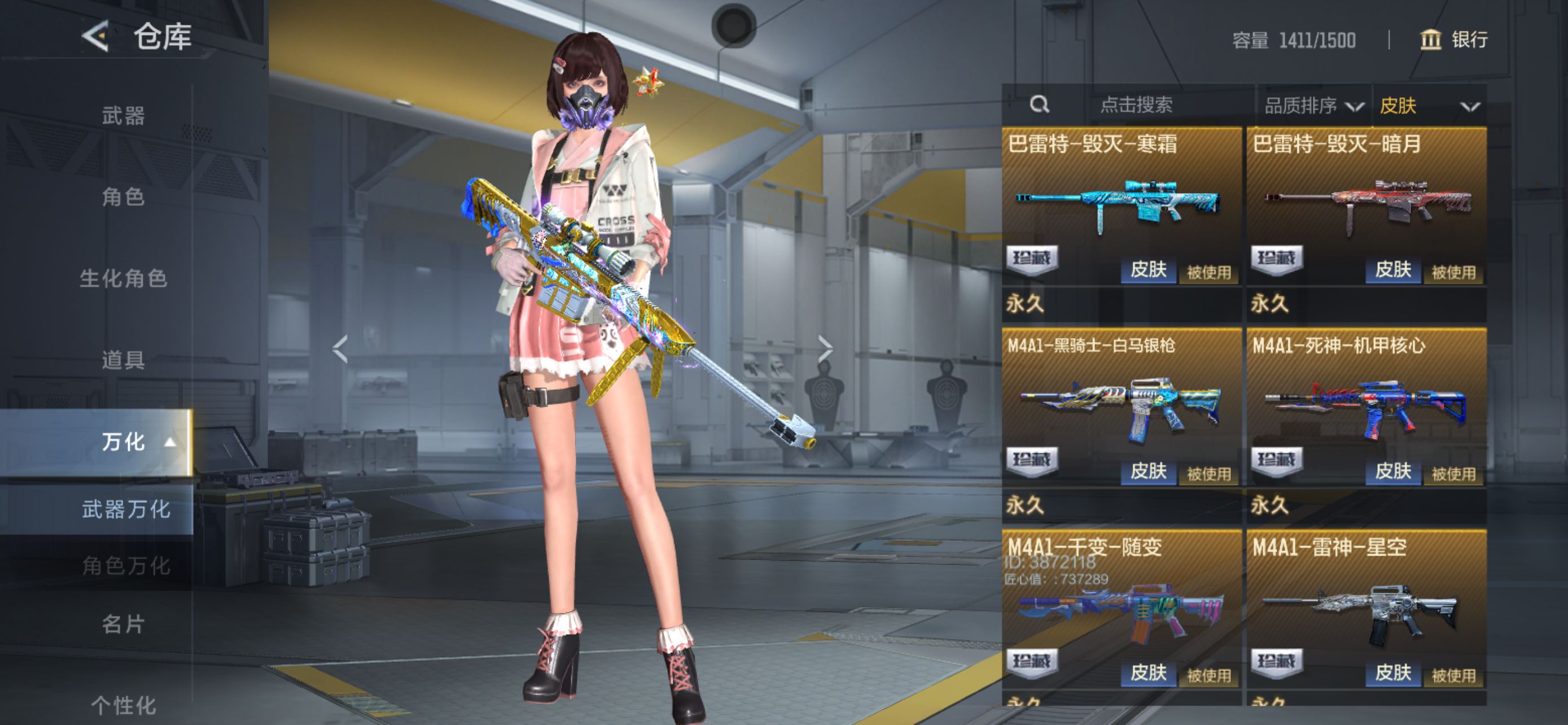 可二次果Q 专家S-4英雄角色数-237英雄武器数-【万化皮肤】:王者之怒-冰霜奇迹,MK47鼓龙白昼【狙击枪线】:98K-星神-漫游之线,AWM-裁决-流光之线【王者系列】:王者之影,王者之怒,王者之心,王者之狱,王者之魂,王者之霆【热门武器】:KSG-孟获,MK47-仁德,AK47-奉先,M4A1-星象,M4A1-游骑兵,M200-幻神,AWM-游骑兵,81式-阿波罗,COP 357-雷霆,COP 357-星象,COP 357-堕天神【角色】:瞳,关小雨,炽天使-X,零-新生【英雄武器】:AK47-无影,AK47-火麒麟*2,AK47-沙漠领主,AK47-雷麒麟,AK47-奉先,AK47-血武士,AK47-华夏传说,AK47-黑鲨,AK47-木兰,AK47-谜城烟火*2,M4A1-雷神,M4A1-黑骑士,M4A1-死神,M4A1-游骑兵,M4A1-星象,M4A1-龙血,M4A1-堕天神,M4A1-运输船,M4A1-猎神,M4A1-千变,M4A1-太白诗仙,SCAR Light-白虎,SCAR-印刷术觉醒,AN94-四凶觉醒,AN94-赳赳秦师*2,9A91-天神,M14EBR-拂影,QBZ03-死神,QBZ03-玉面羞花,HK416-极光,MK47-仁德,G3A3-五色琉璃觉醒,G3A3-衍神兵,QBZ191-金甲虎啸觉醒,QBZ191-帝皇铠甲,AWM-游骑兵,巴雷特-毁灭*3,巴雷特-极光,巴雷特-冬灭觉醒,巴雷特-朱雀,M200-幻神,M200-心动次元觉醒,98K-黑骑士,98K-星神,加特林-堡垒*2,加特林-蟒蛇*4,QBB95-极光,QBB95-再战涿鹿,汤姆逊-烈龙,QCW05-变形金刚·大黄蜂*2,CBJ-MS-毒蜂,CZS2-心动次元觉醒,CZS2-血月,M12S-雷霆,PP19野牛-造纸术,打击者-天神,地狱火,嗜血金鲨,AA12-火药,KSG-孟获,贝雷塔-力拔山河,Origin12-机变奇蛇觉醒,USP-神罚*2,USP-雷暴,USP-机械迷城,USP-太白诗仙,沙鹰-修罗*2,气手枪-血月,沙鹰-神兵修罗,沙鹰-宇航兔兔,毛瑟-毒蜂,蟒蛇-奉先,双持GLOCK18-本初,COP 357-星象,COP 357-雷霆,COP 357-堕天神,柯尔特-仲达,柯尔特-伏刹山海觉醒,CZ75-龙映钟山觉醒,CZ75-策,白骨利刃,虎贲钩镰刀,蝴蝶刀-天神*2,女皇利刃-铁胆虎魄,炽芒蝶刃,清刚-觉醒,匕首-浩瀚征途,龙啸,神罚战斧*2,血阳,手斧-机械迷城,秋逸觉醒,刑天战斧,屠龙*6,血月,尼泊尔-机械纪元,尼泊尔-竞界荣光*3,太白诗仙扇,麒麟刺*2,星芒,马来剑-毁灭,方天画戟,唐刀-大唐荣耀,擎天觉醒,末日裁决觉醒*2,破邪蛇棍觉醒,马来剑-耀金伯爵,死神手雷*3,火麒麟手雷,幻兽手雷,黑骑士手雷,黑武士手雷,手雷-竞界荣光*2,高爆手雷-雷暴,高爆手雷-堕天神,高爆手雷-无限*3,高爆手雷-神工天巧,手雷-云海游龙,王者之竞手雷,分裂雷-偃蛇,手雷-游骑兵,高爆手雷-幻灵*2,死神闪光弹*2,黑武士闪光弹,王者之翼闪光弹,闪光弹-游骑兵,幻兽闪光弹,黑骑士闪光弹,火麒麟闪光弹,闪光弹-堕天神,闪光弹-神工天巧,死神烟雾弹,黑武士烟雾弹*7,烟雾弹-游骑兵,王者之翼烟雾弹,幻兽烟雾弹,黑骑士烟雾弹*2,火麒麟烟雾弹,烟雾弹-堕天神,烟雾弹-神工天巧,燃烧弹-游骑兵*2,,各种道具详情看截图、低价出售找回包 赔、截图展示段位不代 表实际段位,如赛季更新等不可抗拒因素发生变化、时限道具不保证所剩时间、标题未写送点劵默认不送【卖号买号首选亿梦】
