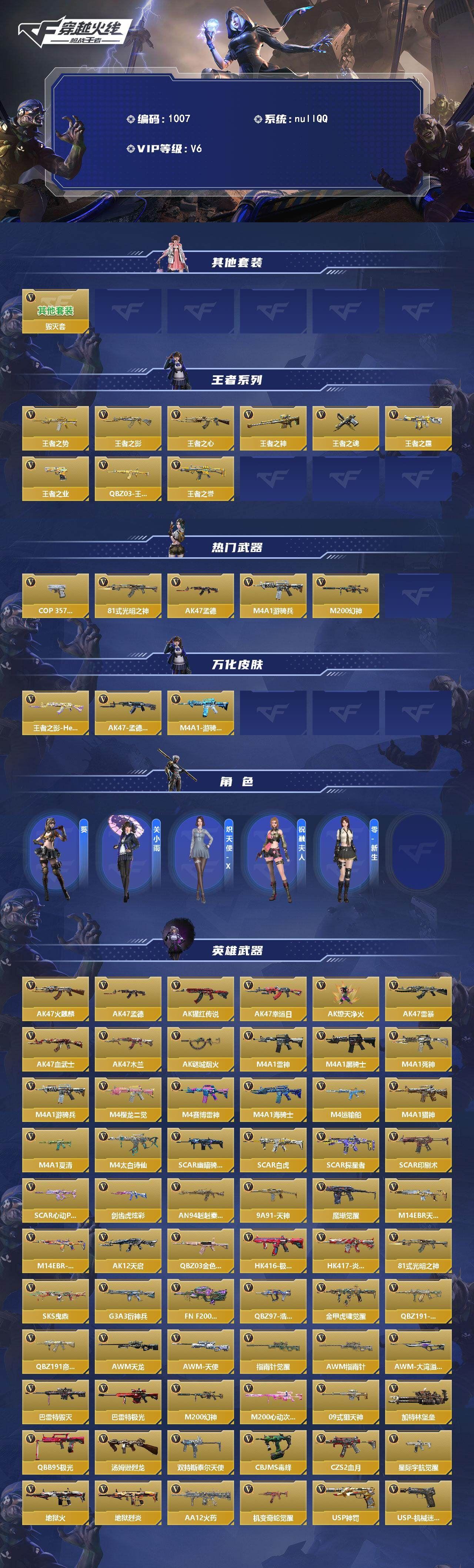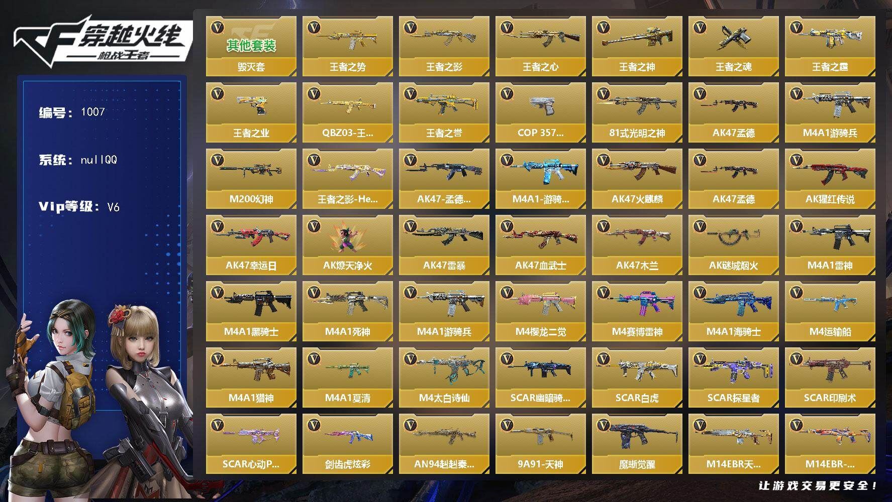 可二次苹果qq,大师-5英雄角色数-205英雄武器数【王者系列】:王者之势,王者之影,王者之心,王者之神,王者之魂,王者之霆,王者之业,QBZ03-王者蔷薇,王者之誉【热门武器】:COP 357-安琪拉,81式-光明之神,AK47-孟德,M4A1-游骑兵,M200-幻神【角色】:葵,关小雨,炽天使-X,祝融夫人,零-新生【英雄武器】:AK47-火麒麟*2,AK47-孟德,AK47-猩红传说*2,AK47-幸运日,AK47-燎天净火,AK47-雷暴,AK47-血武士,AK47-木兰*2,AK47-谜城烟火*2,M4A1-雷神*2,M4A1-黑骑士,M4A1-死神,M4A1-游骑兵,M4A1-樱龙·二觉,M4A1-赛博雷神,M4A1-海骑士,M4A1-运输船*2,M4A1-猎神,M4A1-夏清,M4A1-太白诗仙,SCAR-幽暗骑士,SCAR Light-白虎,SCAR-探星者,SCAR-印刷术,SCAR-心动PICK,剑齿虎-炫彩,AN94-赳赳秦师,9A91-天神,9A91-魔蜥觉醒,M14EBR-天神,M14EBR-拂影,AK12-天启,QBZ03-金色蔷薇,HK416-极光,HK417-炎龙铠甲,81式-光明之神,SKS-曳鼎,G3A3-衍神兵,FN F2000-十绝阵觉醒,QBZ97-浩瀚征途,QBZ191-金甲虎啸觉醒,QBZ191-封神榜,QBZ191-帝皇铠甲,AWM-天龙,AWM-天使,AWM-指南针觉醒,AWM-指南针,AWM-大湾溢彩,巴雷特-毁灭*2,巴雷特-极光,M200-幻神,M200-心动次元,09式狙-天神,加特林-堡垒,QBB95-极光,汤姆逊-烈龙,双持斯泰尔-天使*2,CBJ-MS-毒蜂,CZS2-血月,DDM4-PDW-星际宇航觉醒,地狱火,地狱烈炎,AA12-火药,Origin12-机变奇蛇觉醒,USP-神罚*2,USP-机械迷城,USP-太白诗仙,沙鹰-修罗*4,沙鹰-天神,沙鹰-神兵修罗,改装GLOCK-木兰,蟒蛇-鼓龙,双持GLOCK18-本初,GLOCK18-猎神,改装GLOCK-樱龙·超觉,COP 357-安琪拉,QSZ92-华夏传说,柯尔特-仲达,双持柯尔特-极光,蝴蝶刀-天神,女皇利刃-铁胆虎魄,炽芒蝶刃,清刚-觉醒,匕首-浩瀚征途,龙啸,神罚战斧*2,血阳,手斧-机械迷城*2,屠龙*7,龙鳞-觉醒,太白诗仙扇,星芒,马来剑-毁灭*2,唐刀-华夏传说,唐刀-大唐荣耀,擎天,破邪蛇棍觉醒,马来剑-耀金伯爵,死神手雷,火麒麟手雷,机械纪元手雷,高爆手雷-雷暴,高爆手雷-无限,手雷-星象,王者之竞手雷,死神闪光弹,闪光弹-游骑兵,幻兽闪光弹,王者之心闪光弹,机械纪元闪光弹,火麒麟闪光弹,闪光弹-雷暴,闪光弹-神工天巧*2,闪光弹-星象,闪光弹-幻灵,王者之影烟雾弹,烟雾弹-游骑兵,王者之心烟雾弹,机械纪元烟雾弹,火麒麟烟雾弹,烟雾弹-雷暴,烟雾弹-星象,烟雾弹-幻灵,燃烧弹-星象,燃烧弹-游骑兵【三国/其他套装】:毁灭套【万化皮肤】:王者之影-HeartShot,AK47-孟德-过载,M4A1-游骑兵-寒霜,各种道具详情看截图、低价出售找回包 赔、截图展示段位不代 表实际段位,如赛季更新等不可抗拒因素发生变化、时限道具不保证所剩时间、标题未写送点劵默认不送【卖号买号首选亿梦】