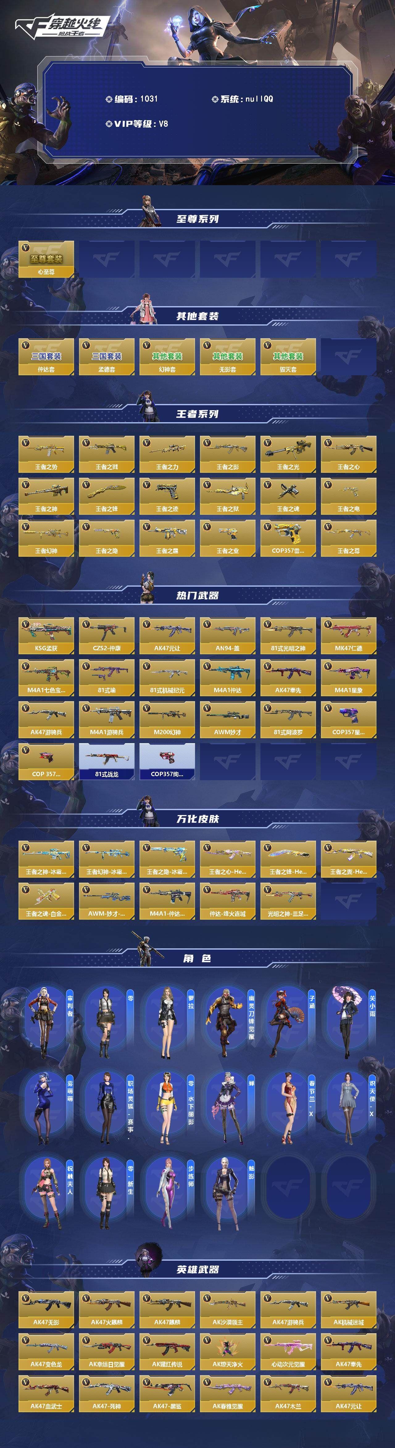 可二次QQ 【ios】大师SS-18英雄角色数-499英雄武器数【王者系列】:王者之势,王者之戮,王者之力,王者之影,王者之光,王者之心*2,王者之神,王者之锋,王者之迹,王者之狱,王者之魂,王者之电,王者幻神,王者之隐,王者之霆,王者之业,COP 357-雷霆王者,王者之尊【热门武器】:KSG-孟获,CZS2-仲康,AK47-元让,AN94-盖,81式-光明之神,MK47-仁德,M4A1-七色宝葫,81式-瑜,81式-机械纪元,M4A1-仲达,AK47-奉先,M4A1-星象,AK47-游骑兵,M4A1-游骑兵,M200-幻神,AWM-妙才,81式-阿波罗,COP 357-星象,COP 357-堕天神*3,81式-战龙,COP 357-绚樱【角色】:审判者,零,萝拉,幽灵刀锋-觉醒,子涵,关小雨*2,雾萌萌,职场灵狐-赛事经理,零-水下丽影*2,蝉,春节兰-X,炽天使-X,祝融夫人,零-新生,步练师,魅影【英雄武器】:AK47-无影,AK47-火麒麟*2,AK47-麒麟,AK47-沙漠领主*2,AK47-游骑兵,AK47-机械迷城*2,AK47-变色龙,AK47-幸运日觉醒,AK47-猩红传说,AK47-燎天净火,AK47-心动次元觉醒,AK47-奉先,AK47-血武士*2,AK47-死神,AK47-黑鲨,AK47-春雅觉醒,AK47-木兰,AK47-元让,AK47-雅韵青花,AK47-塔罗牌觉醒,AK47-谜城烟火*2,M4A1-雷神*2,M4A1-黑骑士*2,M4A1-黑龙,M4A1-死神*4,M4A1-玫瑰精灵*2,M4A1-天使,M4A1-游骑兵,M4A1-竞技战魂,M4A1-星象,M4A1-樱龙·超觉,M4A1-龙血,M4A1-仲达,M4A1-竞界荣光,M4A1-七色宝葫,M4A1-机械迷城,M4A1-赛博雷神,M4A1-海骑士,M4A1-破空冰刃,M4A1-堕天神,M4A1-心动次元,M4A1-运输船*2,M4A1-猎神,M4A1-雷暴,M4A1-夏清,M4A1-千变,M4A1-太白诗仙,M4A1-铁胆虎魄,SCAR-幽暗骑士觉醒,SCAR Light-白虎,SCAR-探星者*2,SCAR-印刷术,SCAR-心动PICK,剑齿虎,AN94-超新星,剑齿虎-炫彩,AN94-四凶觉醒,AN94-赳赳秦师*2,AN94-精卫填海,AN94-盖,AUG-机械纪元,9A91-天神,9A91-魔蜥觉醒,M14EBR-暗夜,M14EBR-天神,M14EBR-拂影*2,M14EBR-玄武,M14EBR-葫芦山庄,M16-恶魔,AK12-天启,QBZ03-金色蔷薇*2,QBZ03-死神,QBZ03-枪娘,QBZ03-玉面羞花,HK416-极光,HK417-炎龙铠甲,81式-机械纪元,81式-瑜,81式-光明之神,QBZ19-天使,MK47-机械纪元,MK47-仁德,G3A3-五色琉璃觉醒,G3A3-衍神兵,FN F2000-十绝阵觉醒,QBZ97-浩瀚征途,QBZ191-金甲虎啸觉醒,QBZ191-封神榜,QBZ191-帝皇铠甲*2,AK103-湮灭,AWM-天龙,AWM-妙才,AWM-裁决,AWM-天使,AWM-指南针觉醒,AWM-指南针,AWM-大湾溢彩,巴雷特-毁灭*6,巴雷特-极光*6,巴雷特-枪娘,巴雷特-安琪拉,巴雷特-变色龙,巴雷特-雷霆,巴雷特-冬灭觉醒,暗杀星,M200-幻神,M200-心动次元觉醒,09式狙-天神*2,98K-黑骑士,98K-血月*2,98K-星神,MR1-龙吟惊沧海,TAC-天使,TAC-晴舞,GM6-战争风云觉醒,VSK-94-九黎兵主觉醒,RPK-盘龙,RPK-赤炎盘龙,加特林-堡垒,加特林-炼狱*3,加特林-蟒蛇,刘易斯-血月,MG36-黑骑士,MG36-幽暗骑士,QBB95-极光,QBB95-再战涿鹿,MK5-极光,汤姆逊-烈龙,寒霜烈龙*6,双持斯泰尔-天使*2,QCW05-未来战士,QCW05-变形金刚·大黄蜂,CBJ-MS-毒蜂,CZS2-善财童子,CZS2-仲康,M12S-天公,PP19野牛-造纸术,打击者-天神,地狱火*2,嗜血金鲨,地狱烈炎,AA12-雷神,AA12-火药觉醒,KSG-黑骑士,KSG-极光,KSG-孟获,KSG-钟馗觉醒,贝雷塔-力拔山河,M1216-血月,各种道具详情看截图、低价出售找回包 赔、截图展示段位不代 表实际段位,如赛季更新等不可抗拒因素发生变化、时限道具不保证所剩时间、标题未写送点劵默认不送【卖号买号首选亿梦】