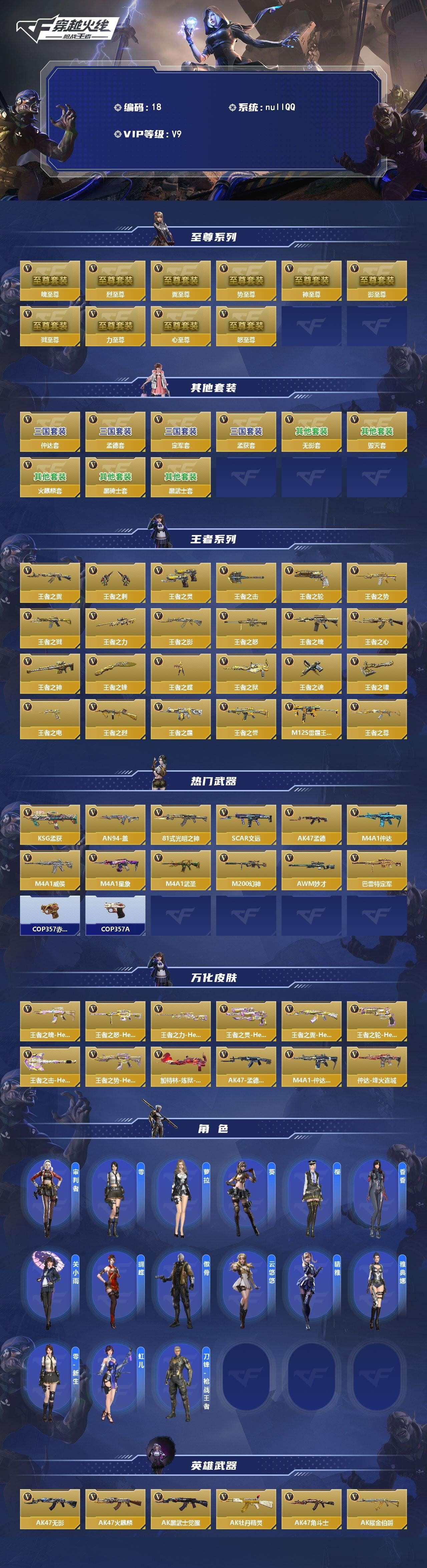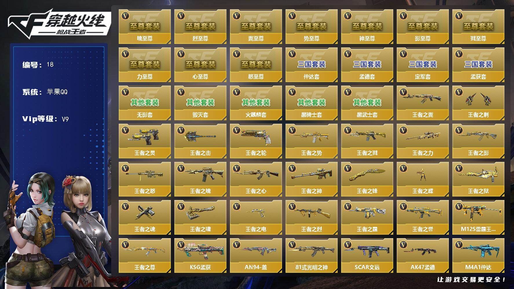 可二次苹果qq,大师SS-19英雄角色数-282英雄武器数【王者系列】:王者之翼,王者之刺,王者之灵,王者之击*3,王者之轮,王者之势,王者之戮,王者之力,王者之影,王者之怒,王者之魄,王者之心,王者之神,王者之锋,王者之蝶,王者之狱,王者之魂,王者之啸,王者之电,王者之烈,王者之霆,王者之誉,M12S-雷霆王者,王者之尊【热门武器】:KSG-孟获,AN94-盖,81式-光明之神,SCAR-文远,AK47-孟德,M4A1-仲达,M4A1-威侯,M4A1-星象,M4A1-武圣,M200-幻神,AWM-妙才,巴雷特-定军,COP 357-赤龙*3,COP 357-A【角色】:审判者,零,萝拉,葵,樱,香香*2,关小雨*3,蝴蝶,傲骨,云悠悠,晴雅,雅典娜,零-新生,虹儿,刀锋-枪战王者【三国/其他套装】:黑武士套,黑骑士套,火麒麟套,毁灭套,无影套,孟德套,定军套,孟获套,仲达套【至尊系列】:影至尊,戮至尊,力至尊,心至尊,翼至尊,势至尊,怒至尊,魄至尊,神至尊,烈至尊【万化皮肤】:AK47-孟德-过载,M4A1-仲达-过载,加特林-炼狱-怒魔,王者之击-HeartShot,王者之轮-HeartShot,王者之灵-HeartShot,王者之怒-HeartShot,王者之力-HeartShot,王者之势-HeartShot,王者之魄-HeartShot,王者之翼-HeartShot,M4A1-仲达-烽火连城【英雄武器】:AK47-无影,AK47-火麒麟,AK47-黑武士觉醒,AK47-牡丹精灵,AK47-角斗士,AK47-耀金伯爵,AK47-火麒麟-灵狐,AK47-孟德,AK47-谜城烟火,M4A1-雷神*2,M4A1-黑骑士*3,M4A1-黑龙,M4A1-死神*3,M4A1-君威GS,M4A1-武圣,M4A1-星象,M4A1-变色龙,M4A1-威侯,M4A1-仲达,M4A1-运输船,M4A1-太白诗仙,M4A1-铁胆虎魄,SCAR-文远,SCAR Light-白虎,SCAR-探星者,剑齿虎,AN94-超新星,AN94-赳赳秦师,AN94-盖,FAMAS-湮灭,9A91-魔蜥觉醒,M14EBR-暗夜觉醒,M14EBR-葫芦山庄,AK12-天启*2,HK417-炎龙铠甲,81式-光明之神,G36-李星云,MK47-云舞,G3A3-衍神兵,AK103-湮灭,SBR-湮灭,AWM-天龙*2,AWM-天龙-曼陀罗,AWM-妙才,巴雷特-毁灭*6,巴雷特-极光*5,巴雷特-雷神,巴雷特-枪娘,巴雷特-定军,巴雷特-安琪拉,暗杀神,M200-幻神,98K-蜻蜓,GM6-逆骨,VSK-94-九黎兵主觉醒,加特林-炼狱,加特林-堡垒觉醒,QBB95-再战涿鹿,QBB95-螳螂,MK5-机械纪元*2,汤姆逊-烈龙*2,寒霜烈龙,王者之烈,双持斯泰尔-天使*3,斯泰尔-恶魔,A180-地狱凤凰,双持CZS2-魔礼寿,M12S-天公,DDM4-PDW-星际宇航觉醒,嗜血金鲨,地狱烈炎,KSG-孟获,KSG-钟馗觉醒,Origin12-机变奇蛇觉醒,USP-神罚,USP-机械迷城,,各种道具详情看截图、低价出售找回包 赔、截图展示段位不代 表实际段位,如赛季更新等不可抗拒因素发生变化、时限道具不保证所剩时间、标题未写送点劵默认不送【卖号买号首选亿梦】