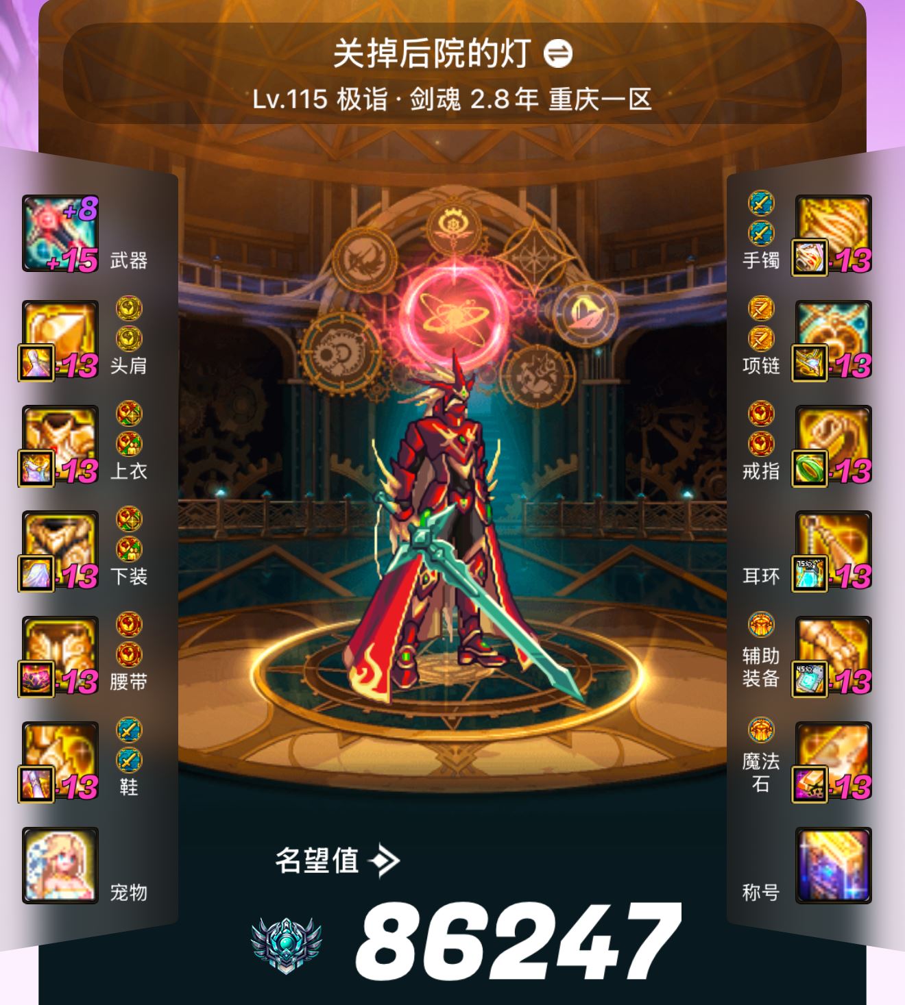 【L916跨2湖北2区】【10套26最新春节】【10套国庆】【2把龙武 3套龙透10套龙袍7套天空】【1只红12 8件红11混搭2件红122件白13 8件红112件红121件白131件白14 9件红12混搭2件红111件白13 7只红11 2只红10】【没破凶】狂战士龙透+龙武 全身红12耳环红13武器红13【4太初7777附魔26双尊】女气功龙透8件红11混搭2件红12耳环白13武器白13【4太初7555】剑魂龙袍+龙武 多半身红11混搭2件红12耳环白13武器白14【4太初7555】流浪武士龙袍 多半身红12混搭2件红11耳环红12武器白13【4太初7527】奶妈龙袍 全身红11【4太初国庆宝珠】刃影龙袍 全身红11耳环红12【4太初7777附魔】枪炮师龙袍 全身红11耳环红12武器白13【7777附魔】阿修罗龙袍 多半身红11混搭2件红12耳环红12武器红11【4太初5775】剑魂龙袍 全身红11耳环白12武器白13【4太初5777】弹药专家龙袍 多半身红11混搭2件红12耳环红12武器白13【5777】鬼泣龙袍 全身红11耳环红12武器白13【4太初5777】协战师龙透 全身红10【国庆宝珠】奶妈龙袍 全身红10【国庆宝珠】