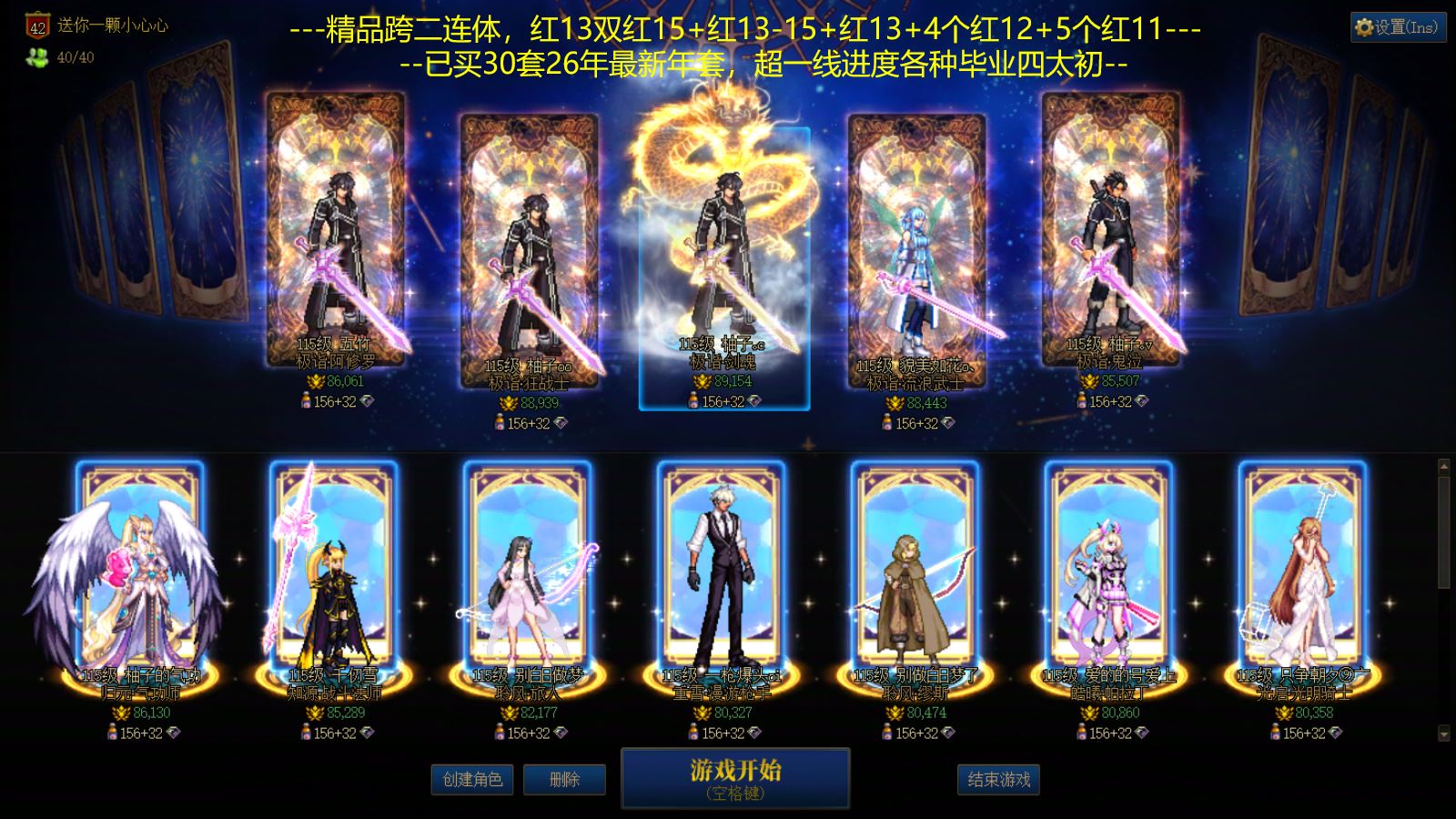 跨1广东1区,【】【1个红13连体1个红12,7个红11,8个红10 】【好几个4太初】【10套26春节,10套25春节,13套最新国庆,五一夏日已购】【勋章满,没破凶】【仓库还有6个宝珠,可卖可自用,还有一些其他春节产物】 【狗子全身完美红13 龙武 龙透 26双尊 桐人 白剑 衣柜】【奶爸全身完美红12 龙武 龙透】【剑魂全身红11混12左槽战败 武器耳环红13 龙透 25双尊】【奶妈全身完美红11 龙袍】【缪斯全身完美红11 龙透】【奶枪全身完美红11 龙透】【散打全身红11 武器白13耳环红12 龙透】【散打全身红11 武器白13耳环红12 龙透】【旅人全身红11武器白13耳环红12 龙透】【精灵全身红10 武器红13耳环红12 龙透】【驱魔全身红10 武器白13耳环红12】【漫游全身红10 武器白13耳环红12】【蓝拳全身红10 武器白13耳环红12】【瞎子全身红10 耳环红12】【刃影全身红10 耳环红12】【奶萝全身红10混11】【奶萝全身红10混11】