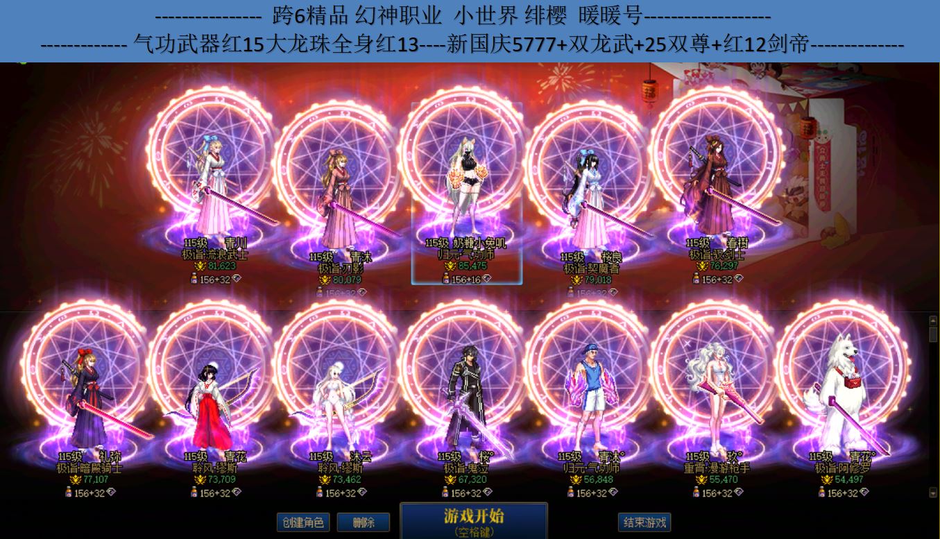 跨3B【4太初黑牙毕业8.5名望红13-16剑魂带队 国庆已购9套 夏日20套 春节20套 3龙武 小世界光环】【剑魂全身13-16 有3件12 超红13配置 龙透龙武25双尊4太初黑牙毕业模拟62亿】【气功全身11-12龙透龙武25双尊4太初毕业】【鬼泣全身11-12龙透龙武】【魔神全身11-12龙透】【奶妈全身11-12龙透龙武奶尊】【驱魔全身11-12龙透4太初毕业】【红10剑帝 加一些打造小号】