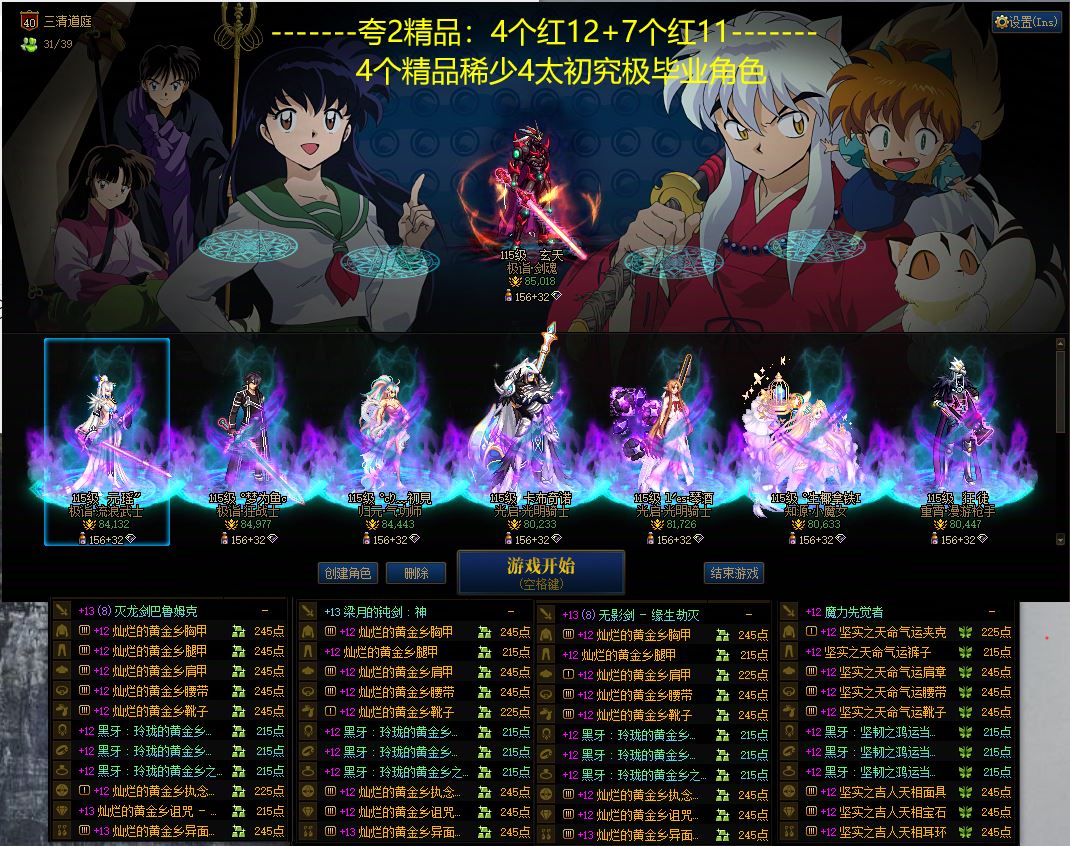 z湖北4区;【夸2在售4个红12,6个红11】【已买30套2025春节,13套最新国庆】【灭龙剑,无影剑】【4个4太初究极毕业角色,9个太初黑牙黄金乡】【模拟伤害,55E,46E,44E,37E】8.5W名望全身增幅12-13双至尊神器克隆剑魂+8.49W名望全身增幅12-13双至尊神器克隆狂战士+8.4W名望武器强化13剩下增幅12-13神器克隆剑帝+8.4W名望全身增幅12双至尊神器克隆百花+【6个红11奶妈,魔女,鳗鱼,鬼泣,阿修罗,奶爸】