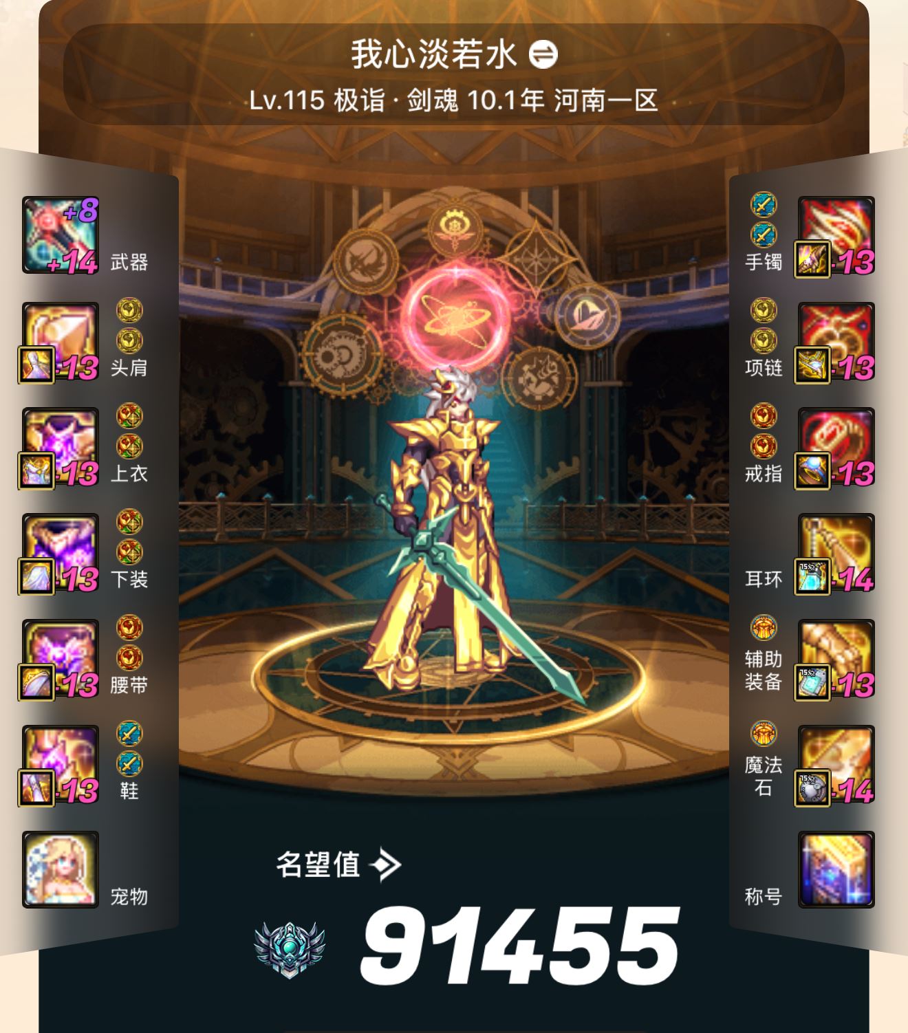 Y河南1区【跨六】《红14-13剑魂带队,模拟150亿》(灭龙剑,黑牙黄金香毕业,7位Q,送安卓王者)【剑魂红14-13,武器耳环左槽红14,特色7777,龙透,龙武,26年新双尊】+(26年32套年套,最新国庆13套,25年20年套,10套五一,10套夏日,四个龙武)