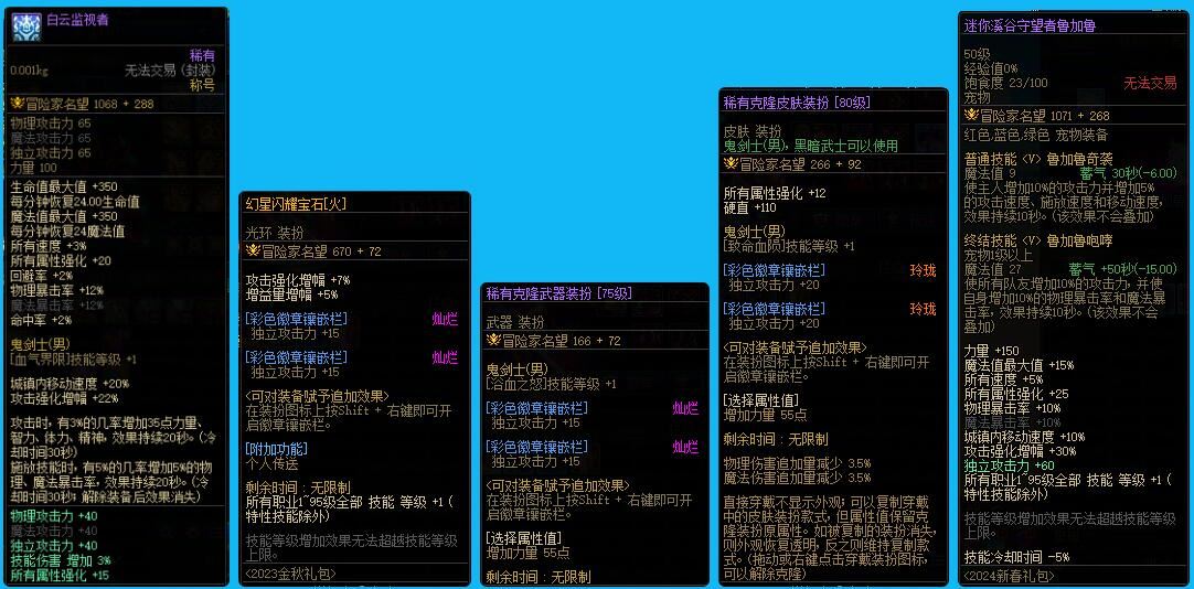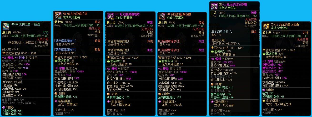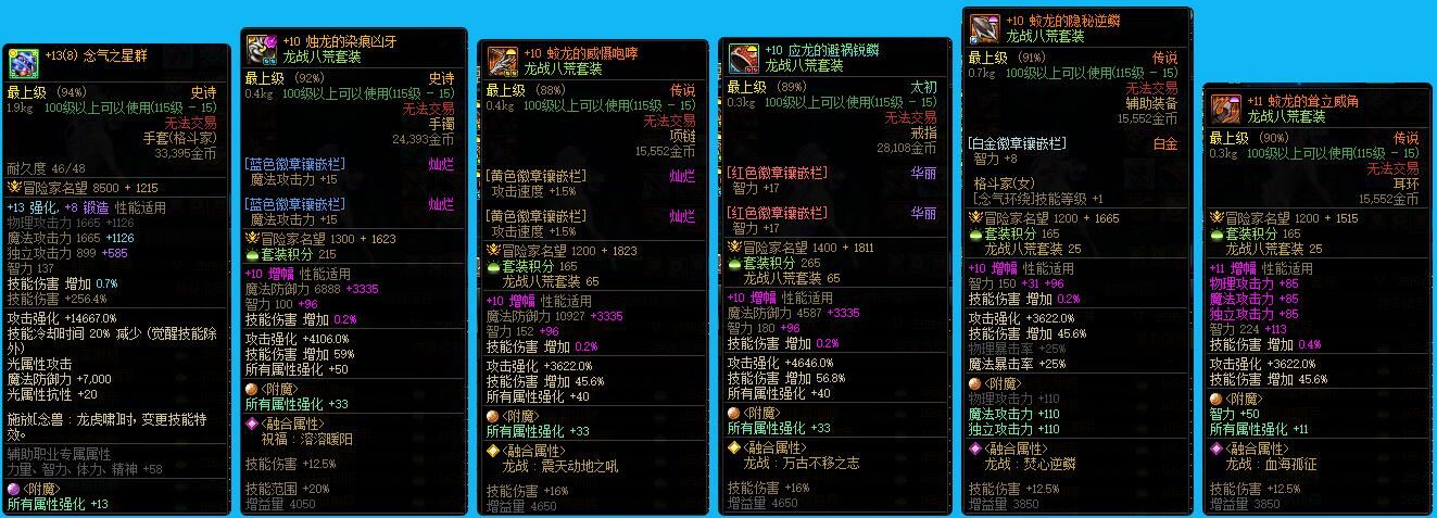 ex1208跨5江苏1红11连体 活动已完成 【超精品!】【五红11+两红10!】【武器13红11满锻造!】【24年双尊!】【多款联动时装搭配绝版且好看!】限定联动时装塞满衣柜,武器装扮,光环特效帅到炸,站街回头率100%! 武器13耳环12红11力量6378名望78153特色5555+24双尊龙透剑魂 武器12红11力量6394名望75562特色5555狂战士 武器13红11力量6136名望74980特色2555蓝拳使者 武器13红11力量6203名望74368特色5557龙透7漫游 武器耳环12红11智力6306名望68874阿修罗 武器13耳环11红10智力5889名望67171气功师 红10体力精神8340名望64424龙袍光明骑士 武器13多10力量5554名望66772 战斗法师 红紫力量精神7265名望56468协战师 武器12红紫智力4553名望55964狩猎者 武器12红紫智力4103名望54566弹药专家 武器12红紫力量4515名望48182奇美拉