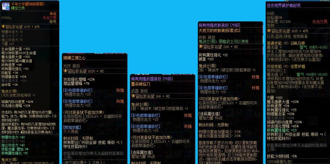 1327跨6河南1红12剑魂 活动已完成 【精品!】【红12+红11+2个红10!】【技功辟邪玉5.8和3.0!超多种类的玉!】【24年双尊+2个24年至尊+24年奶尊!】【超高性价比!】武器13红12毕业套+双至尊在手,打桩伤害轻松破亿,副本随便碾,站街就是最靓的仔!稀有天空套、限定联动时装塞满衣柜,武器装扮、光环特效帅到炸,站街回头率100%!账号价值远超定价,买来直接当主号玩,省去几万打造费,错过拍大腿!无任何违规记录,实名可改,接手即安心,放心畅玩无后顾之忧! 武器13红12力量6942名望78832特色5557+24年双尊龙透剑魂 武器13耳环12红11力量6171名望66502特色5557+24年至尊龙透呛师 武器耳环12多11红10力量5470名望61194旅人 武器11多11智力8381名望62595+24年奶尊龙透光明骑士 红10智力5883名望54687气功师 武器12+24年至尊红紫气功师 武器11多10红紫漫游 武器10红紫龙袍剑影 武器12红紫奇美拉