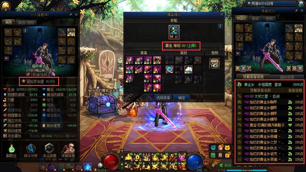 ex1409跨5江苏4区红12魔 神连体 【精品!】【红12+2个红11+8个红10!】【25年双尊+20年至尊!】【虚无之魂!】红12毕业套+双至尊在手,打桩伤害轻松破亿,副本随便碾,站街就是最靓的仔!拥有绝版时装、稀有光环和强力宠物,不仅外观炫酷,属性加成更是强大,站街就是焦点,实力与颜值并存!可二次实名认证,信誉分高,安全可靠,不用担心找回风险,放心购买,安心畅玩! 武器13红12力量6962名望81874特色5557+25年双尊龙透狂战士 武器13耳环12红11智力6357名望78036特色5557龙透气功师 武器13耳环12红11力量6062名望76705特色5557龙透流浪武士 红10智力8418名望72868龙袍光明骑士 武器11耳环12多11红紫智力5420名望66957气功师 武器耳环12红10阿修罗 武器耳环12红10+20年至尊龙透剑魂 武器11红10逐风者 耳环12红10剑魂 耳环12红10驭剑士 红10刃影 武器12红10合金战士 耳环12多11龙透气功师
