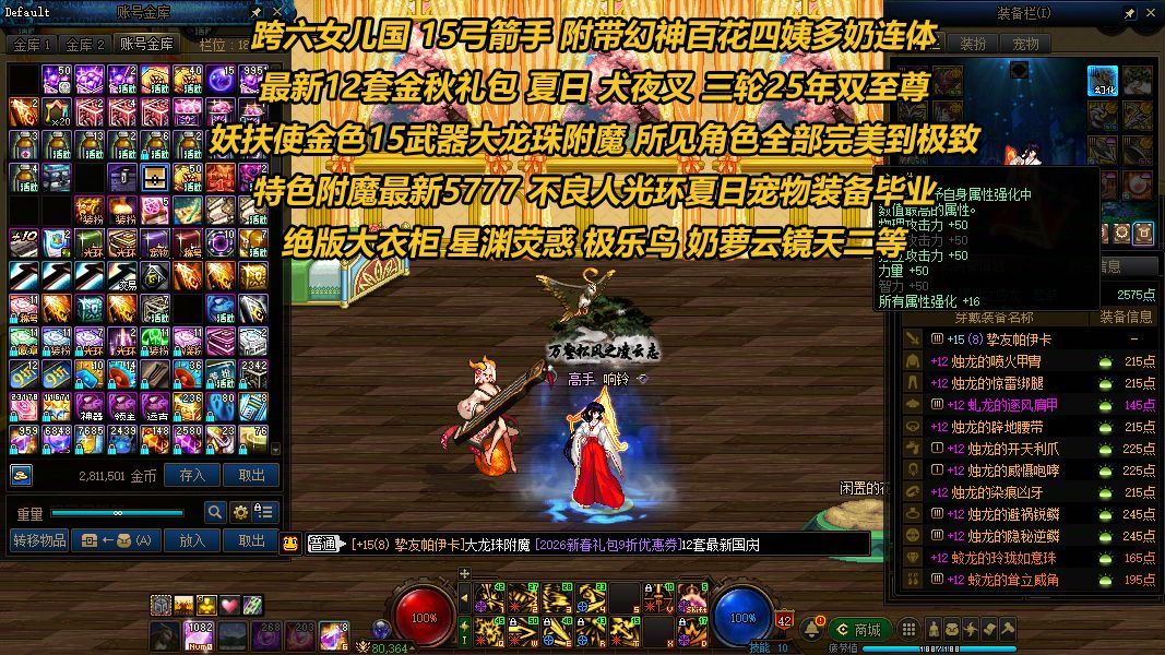 【跨六女儿国 15弓箭手四姨百花多奶】【最新12套金秋礼包 三轮25年双至尊】附带幻神百花四姨多奶连体 最新12套金秋礼包 夏日 犬夜叉 三轮25年双至尊 妖扶使金色15武器大龙珠附魔 所见角色全部完美到极致 特色附魔最新5777 不良人光环夏日宠物装备毕业 绝版大衣柜 星渊荧惑 极鸟 奶萝云镜天二等 送辟邪玉 送3000+勇士币【妖护使】【百花】【四姨】【奶妈】【毒王】【奶萝】【奶呛】等热门职业【送lol 46皮肤】【皇冠q超高等级】【超高信誉分】