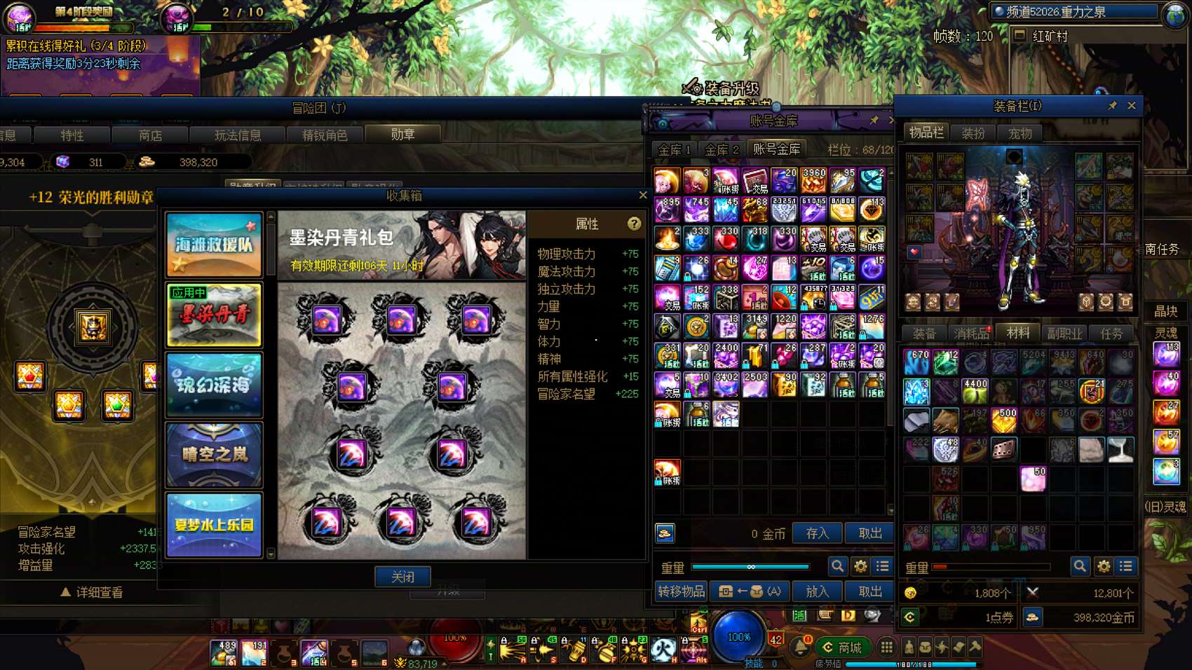 跨1 25新春30套,夏日11套,2个龙武。2个12-13、19个11,16套龙袍。25双尊红12-13龙透大将军,5557技攻+龙武,武器强化➕15。25双尊红12-13龙透蓝拳,5557技攻+龙武。25双尊红11-13龙透审判奶爸,5557技攻。后面角色打造看截图,收集箱满,勋章满,【支持置换,客服在线随时咨询】
