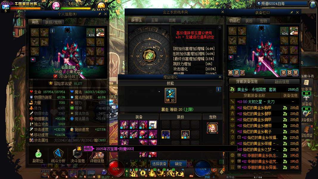 跨3a~四川3区~完美红12剑魂和魔神带队12.5个完美红11奶c和3个红10奶c,2025年25套,2024年20套,2023年25套,角色上带的玉全送,【2025年双至尊灭龙剑剑魂武器耳环增幅13+一身增幅12~13+(攻强5.0+10~15等级)双词条ss玉】【2025年双至尊魔神武器耳环增幅13+一身增幅12+攻强10.5ss玉】【2024年双至尊审判武器增幅13+耳环增幅12+一身增幅11+攻强4.4玉】【2024年双至尊修罗武器增幅13+耳环增幅12+一身增幅11+攻强9.0传说玉】【2025年至尊称号+2024年至尊宠物鬼泣武器增幅13+耳环增幅12+一身增幅11】【缪斯一身增幅11+至尊奶宠+增益量4.14传说玉】【2023年双至尊花花武器耳环增幅13+一身增幅11+1觉传说玉】【女散打武器耳环强化13+一身增幅11】【1号奶萝一身增幅11+固定5奶玉】【2023年至尊宠物剑魔武器强化13+一身增幅11】【1号奶爸耳环增幅12+一身增幅11】【2号奶爸一身增幅11+增益2.25奶玉】【2号奶萝一身增幅11+增益3.1奶玉】【2023年单至尊宠物男气功武器强化13+耳环增幅12+一身增幅10】【3号奶爸一身增幅10】【帕拉丁武器强化13+耳环增幅11+一身增幅10】【混沌魔灵武器增幅13+耳环增幅12+一身增幅11】【剑宗武器强化13+耳环增幅12+一身增幅11】后面附带几个带特色的增幅胚子角色,详情请看图。喜欢来聊