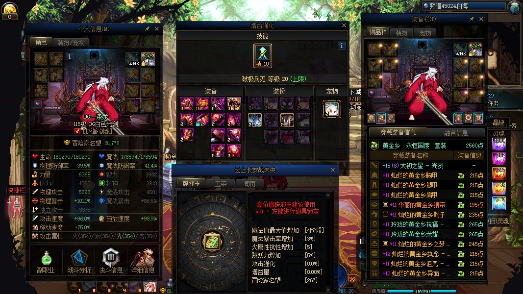 23424广东一区【2025年10套年套】【龙袍双尊红12-11打造15武器8.17W名望剑神】【龙袍红11-10打造天帝】
