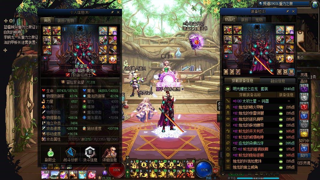 《两个增幅12角色+三个增幅11角色+两个增幅10角色+两套龙透和五套龙袍》送一万代币卷+《破茧双至尊九件增幅12打造完全体6517力量7.7W神兽龙袍+深渊骑士+白狗子涛+土豪哥装扮+龙透魔神》+《双至尊增幅12打造完全体6676力量7.6W名望光翼龙袍刃影》+《增幅12耳环完美增幅11打造完全体7.7W神兽龙袍奶妈》+完美增幅11打造完全体7.5W神兽龙袍奶萝+双至尊追忆天空龙透剑魂+13武器六件增幅11打造完全体光翼龙袍桐人皮肤鬼泣+双增幅11武器耳环增幅10打造完全体协战师+12武器增幅10打造完全体男漫游