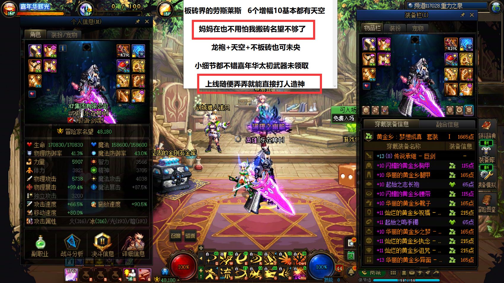 30673湖南一区【顶配红10连体】】增幅14左曹增幅13耳环】DNF野团团长VS板砖大佬双流派账号!6个增幅10嘉年华太初武器未分配!上线随便弄一下即可打维纳斯!可搬砖可未央可回归当主C!一号多玩基本没有上限!!神兽龙袍+大天使龙袍+天空!拿到手想怎么玩就怎么玩!信用分高的离谱!账号安全放心!喜欢别错过!!!