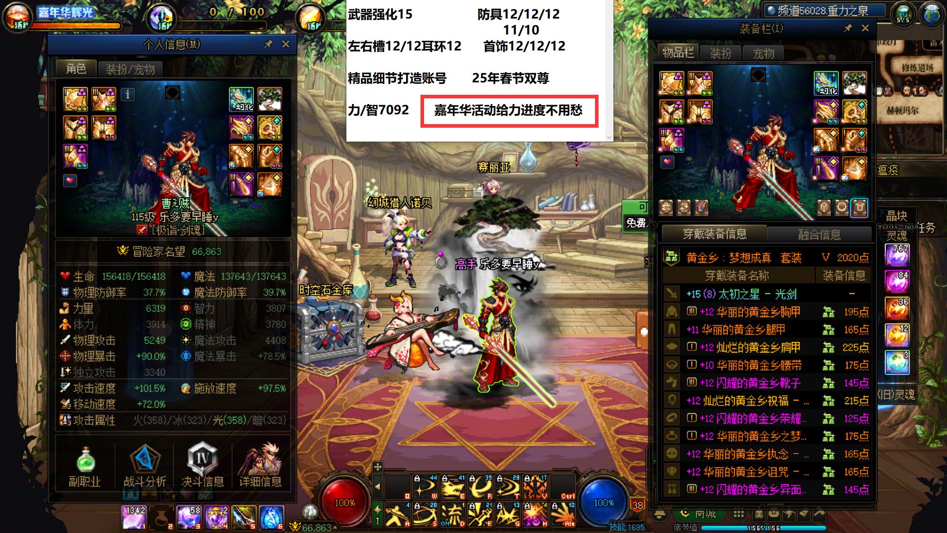 26475西北一区【25年双尊】【强化15武器】嘉年华活动进度无需担心!25年双尊武器15全身完美增幅12下装11腰带10龙透剑魂!带几个增幅小号+多满级角色!春节版本增幅卷子价格很低!把两件补齐就是大佬!武器15全身增幅12当年遥不可及的梦!如今就在眼前!给自己青春和年少一个交代!