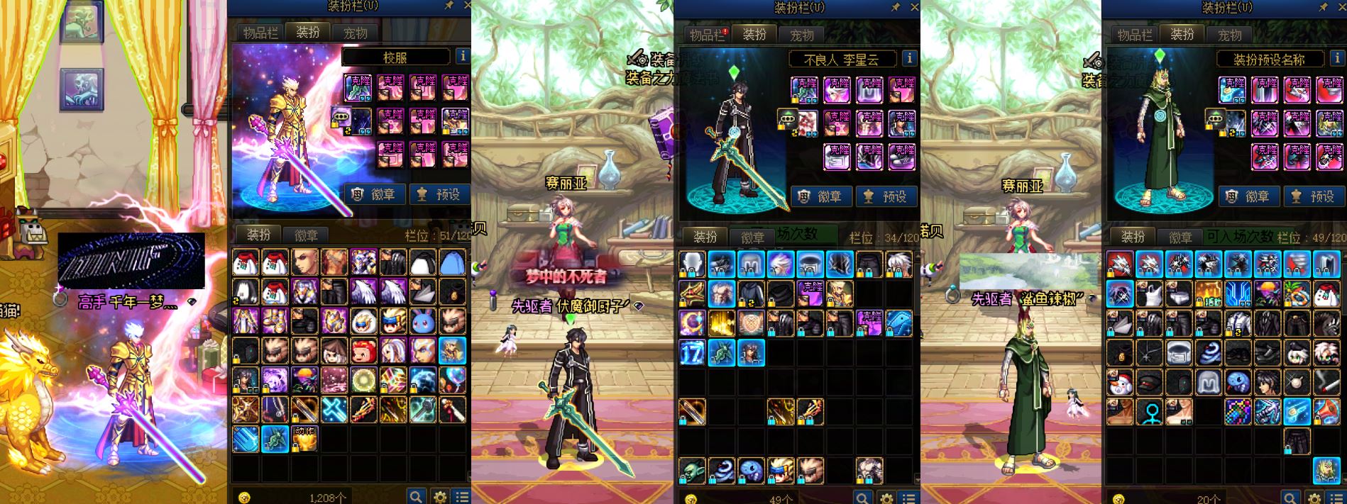 跨6 25双尊龙透剑魂,桐人+英雄王,1件红13+8件红12+1件11,5777技攻+龙武,送玉,模拟43亿。红11-12龙透大枪,差4件,5557技攻。4件红11龙透剑魂,57技攻缺国庆,龙武。国庆2套,细节看