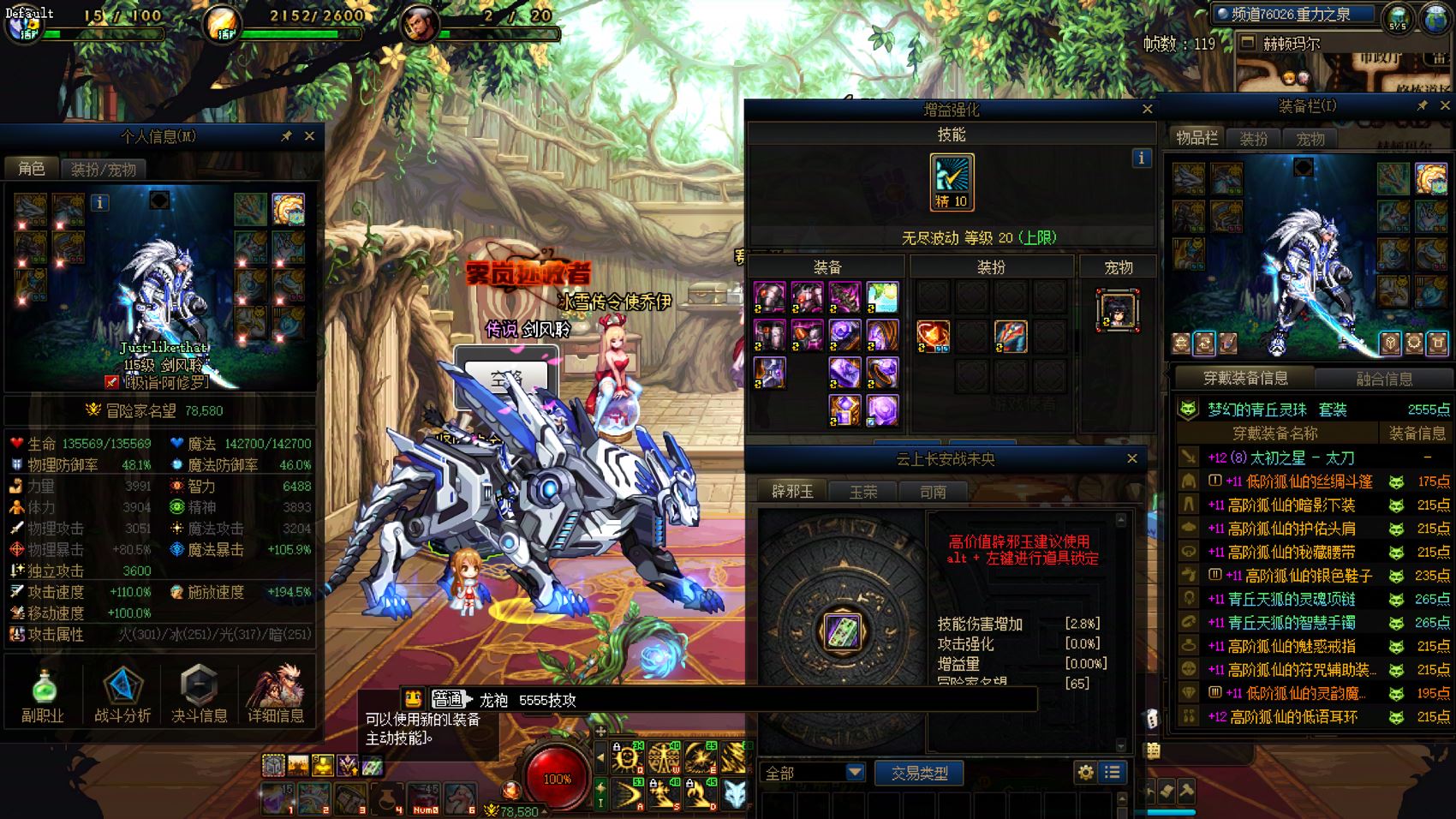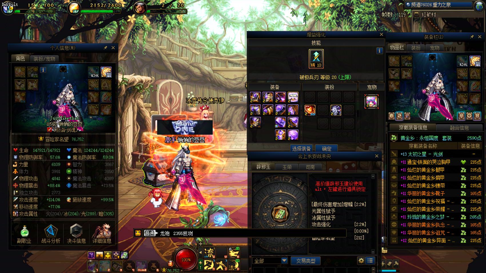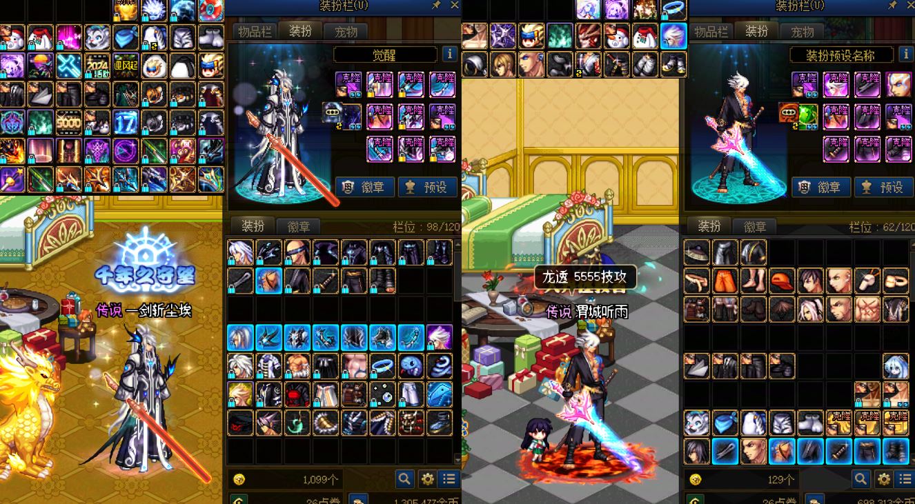 跨2 课 1个12、5个11,7套龙袍。24双尊红12-13龙透剑魂,武器强化15,5555技攻,送6.8技攻+4.5攻强玉,四太初毕业。红11阿修罗、魔神、剑魂、奶妈、剑魂(缺2件)