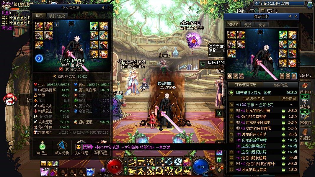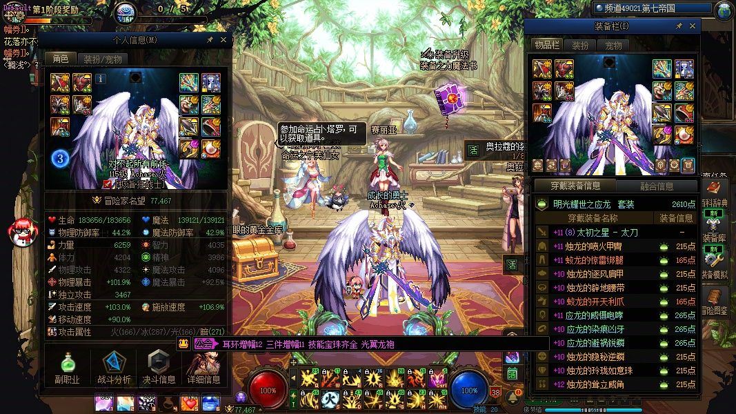 《春节双至尊白14武器三太初装备完美增幅13-12-11打造6589力量8W名望神兽龙袍+龙透双龙袍剑魂》+《双至尊增幅12耳环完美增幅11-10打造完全体6259力量7.7W光翼龙袍魔神》+《增幅10打造完全体阿修罗》