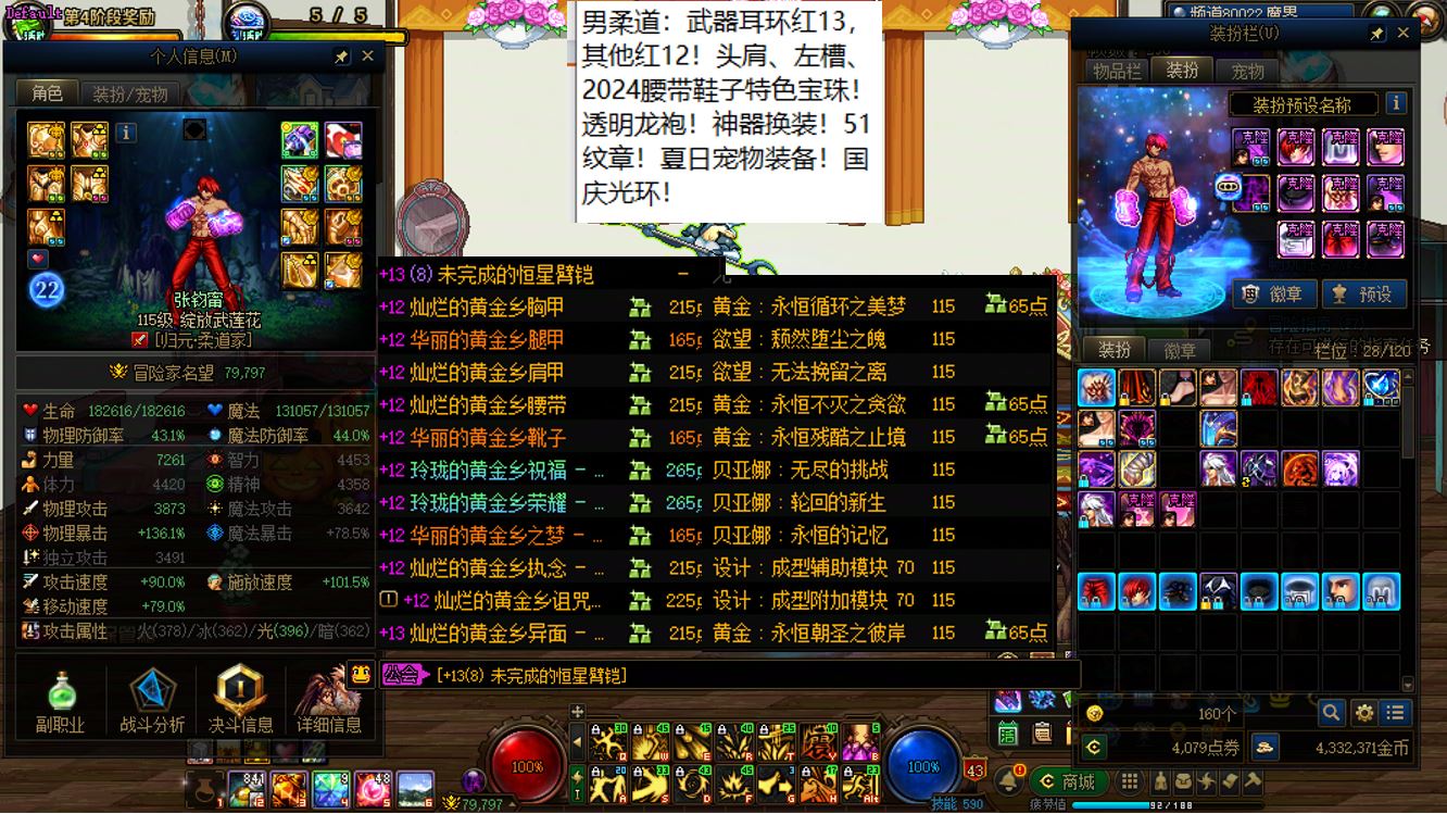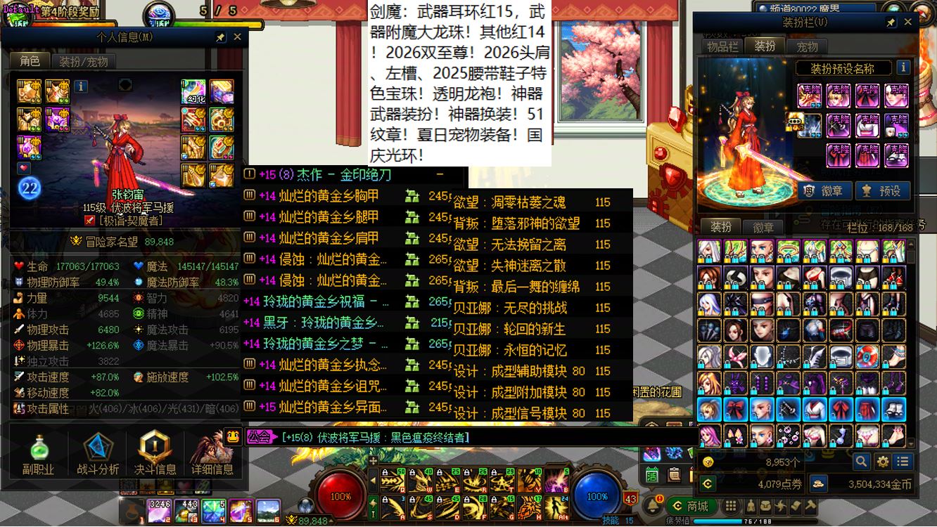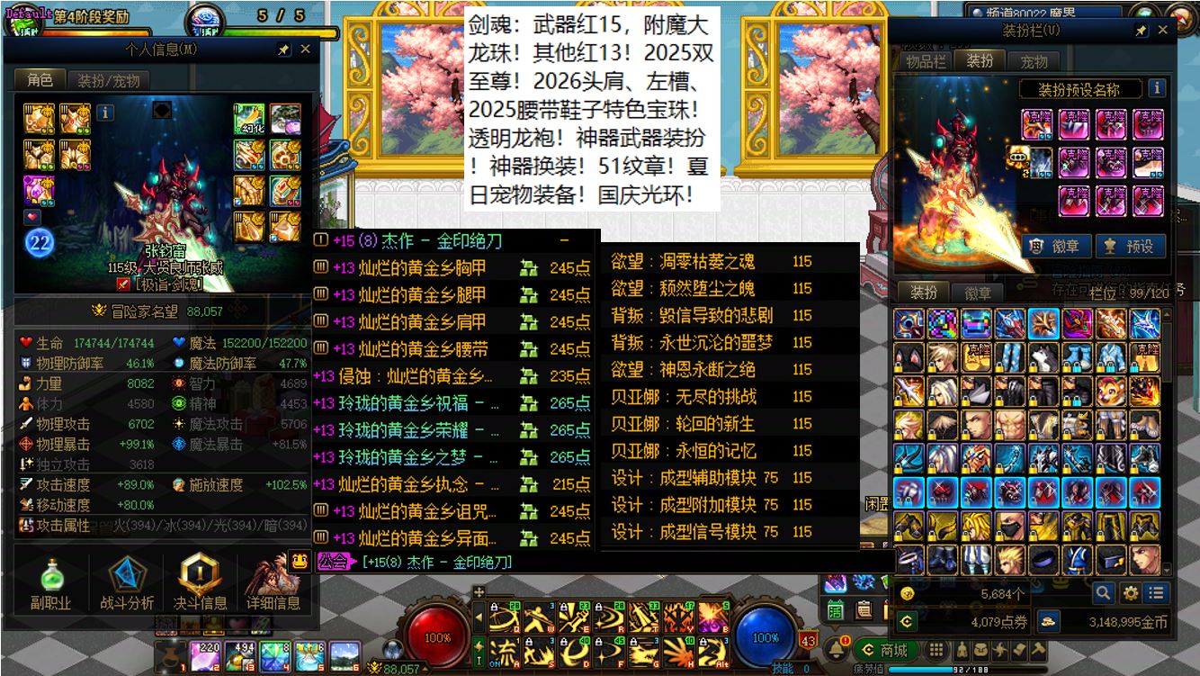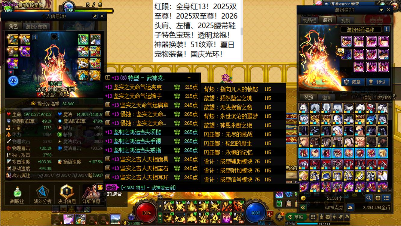 【寄】跨四江苏5区,【已买20套2026年套,进度也在持续跟新】,红15武器红15耳环全身14剑帝【2026最新双至尊】+武器红15全身红13剑神+武器红15准红13女气功+武器红15特殊部位红13武神+6个红13打造【魔神、刃影、奶萝、奶妈、奶爸、奶弓】+11个红12-13角色【剑帝+乌鸡+鬼泣+天帝+四姨+旅人+帕拉丁+女漫游+男大枪+男柔道+奇美拉,其中有很多红13部位,红13武器耳环是标配】,【聊逍遥兮容与,晞余发兮兰之渚】,全部透明龙袍,已买40套2025年套和40套2024年套,四把金色武器五颗大龙珠,排面拉满!序号250223
