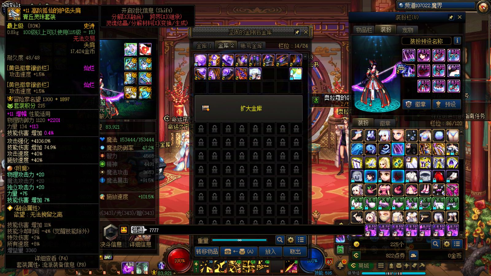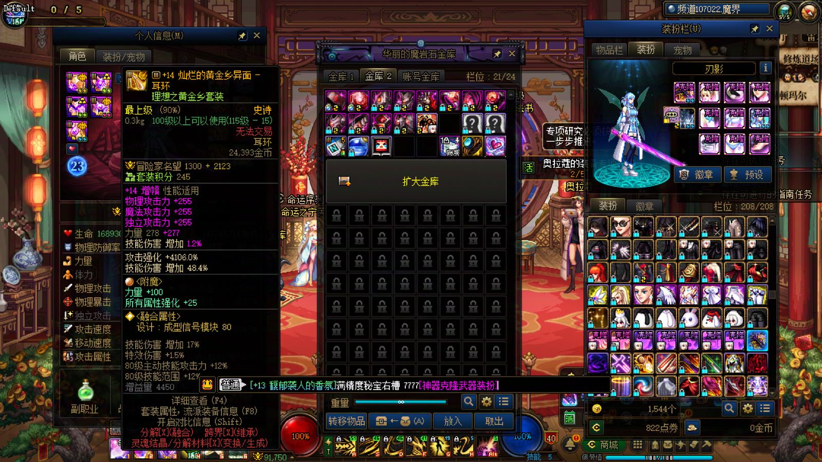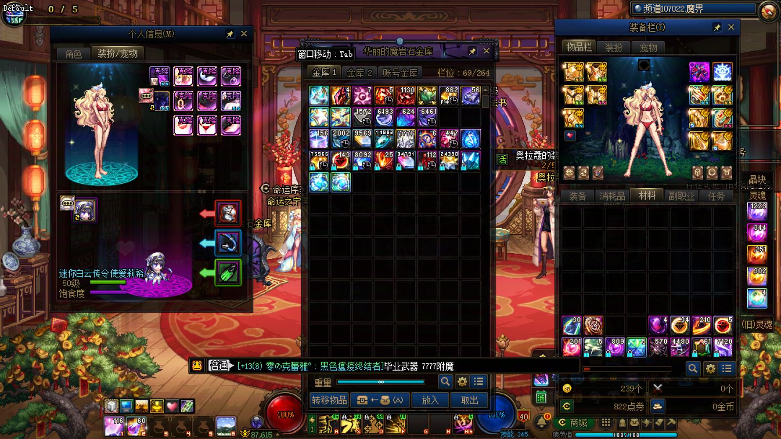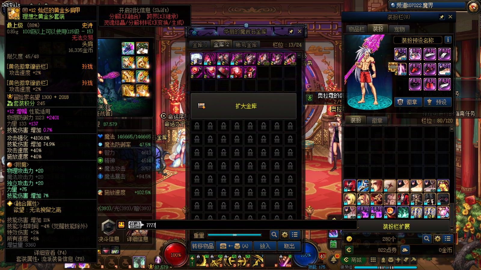 优质商家,置换可优惠!找回包赔!跨三A 西北一区10年套,10套国庆,2龙武,武器耳环红14,全身红13衣柜剑魔,带满精度秘宝右槽价值7000+,附带3个红13 12,4个红12 11,几个红10,金库还有二个红12卷子!红13设计图!附带最新新春收集箱!