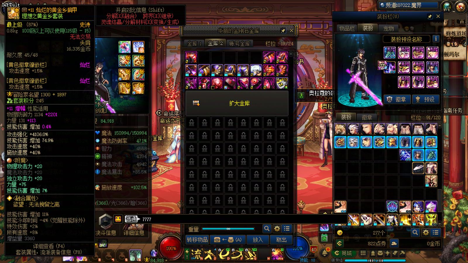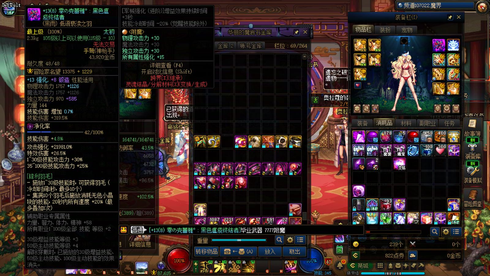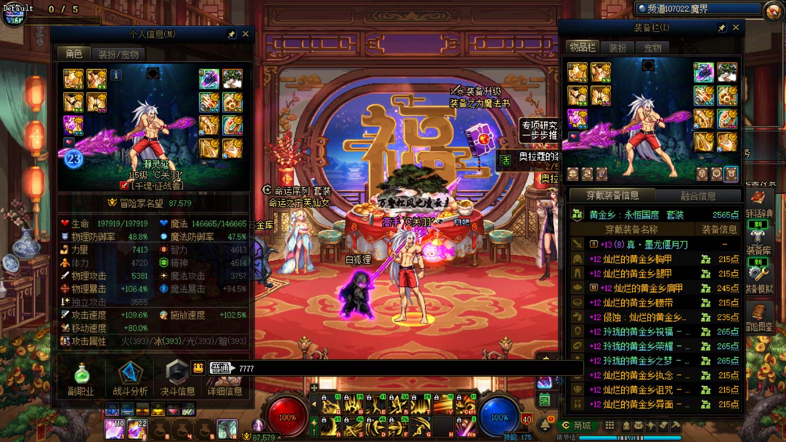 优质商家,置换可优惠!找回包赔!跨三A 西北一区10年套,10套国庆,2龙武,武器耳环红14,全身红13衣柜剑魔,带满精度秘宝右槽价值7000+,附带3个红13 12,4个红12 11,几个红10,金库还有二个红12卷子!红13设计图!附带最新新春收集箱!