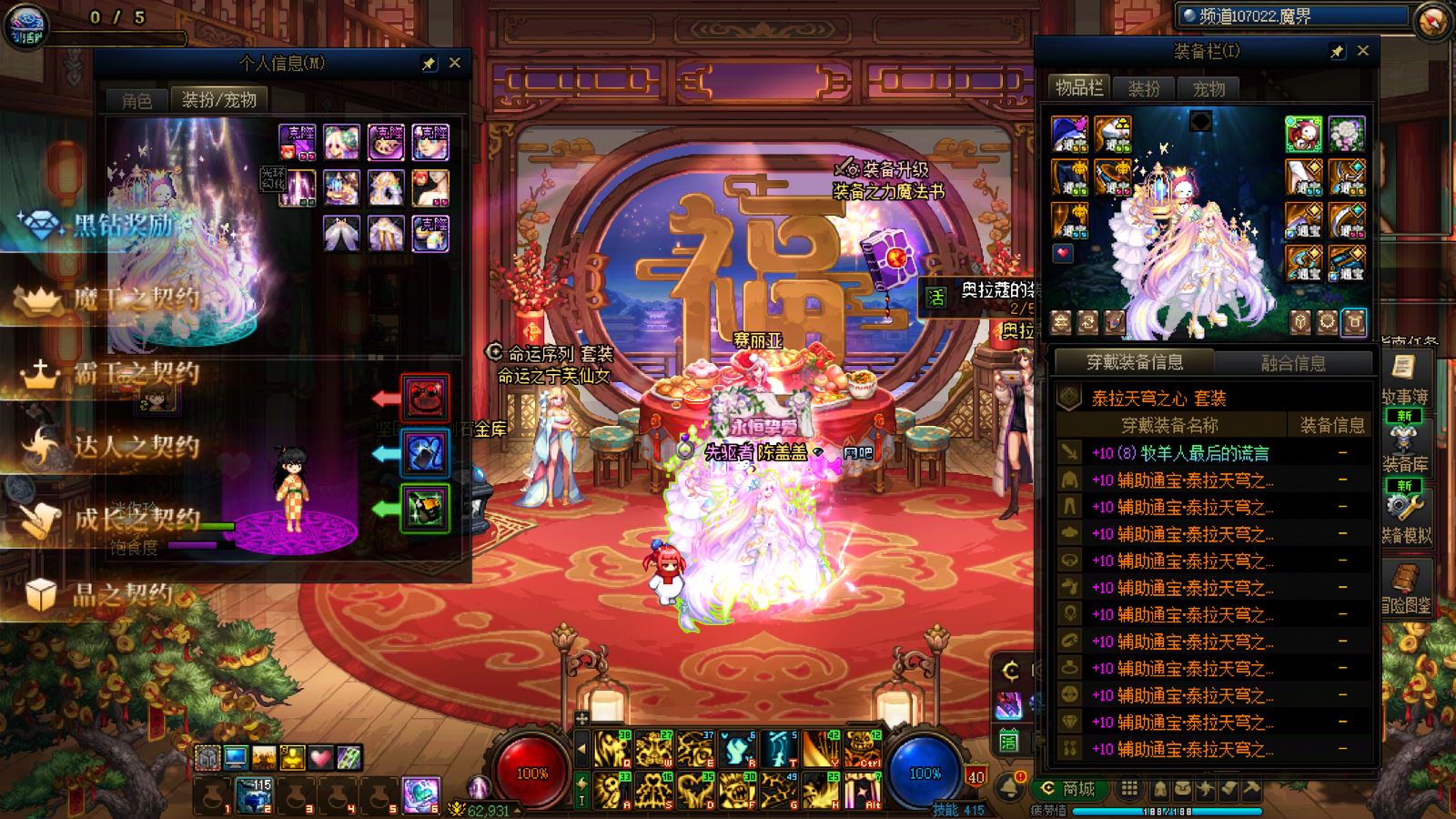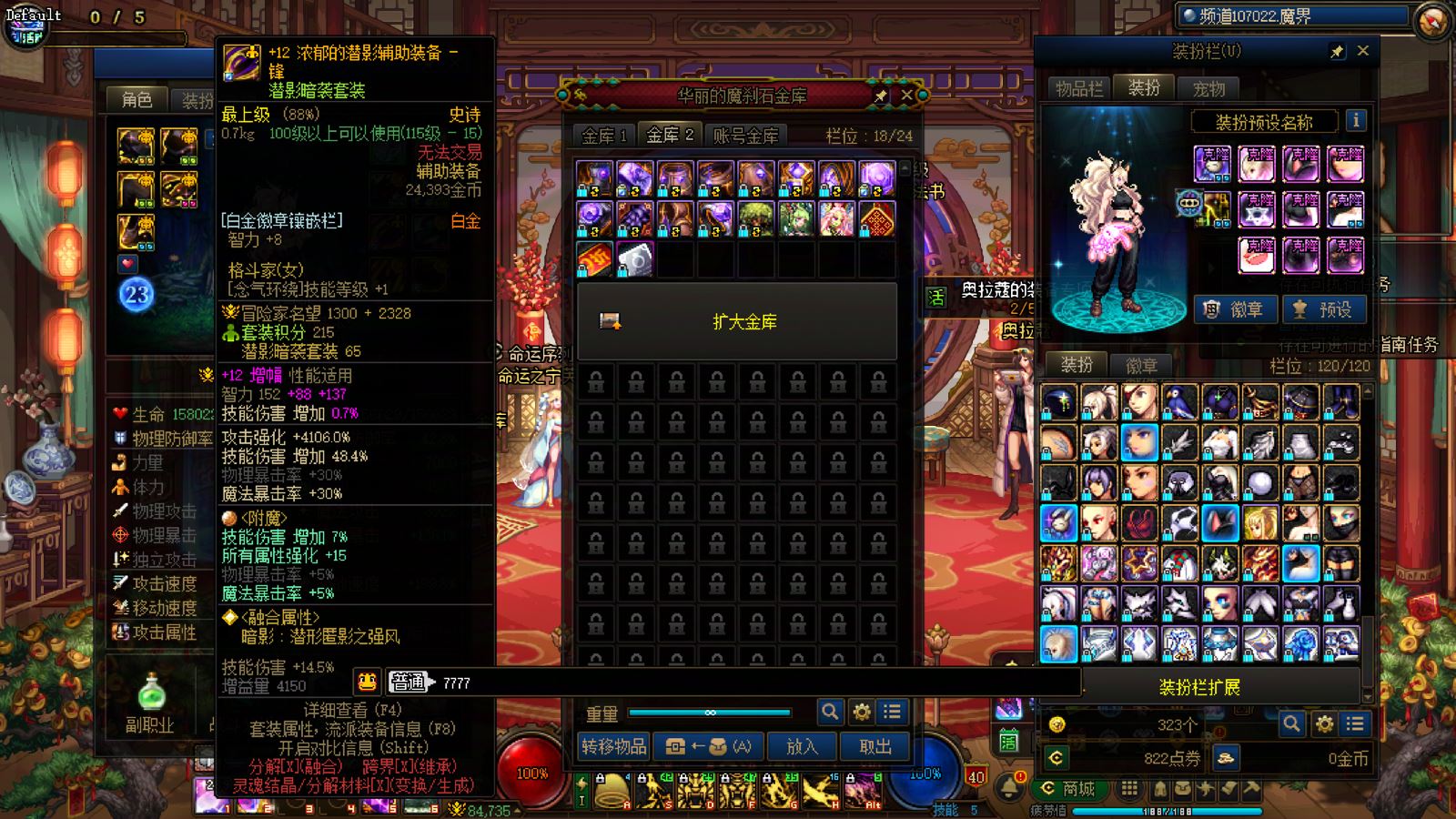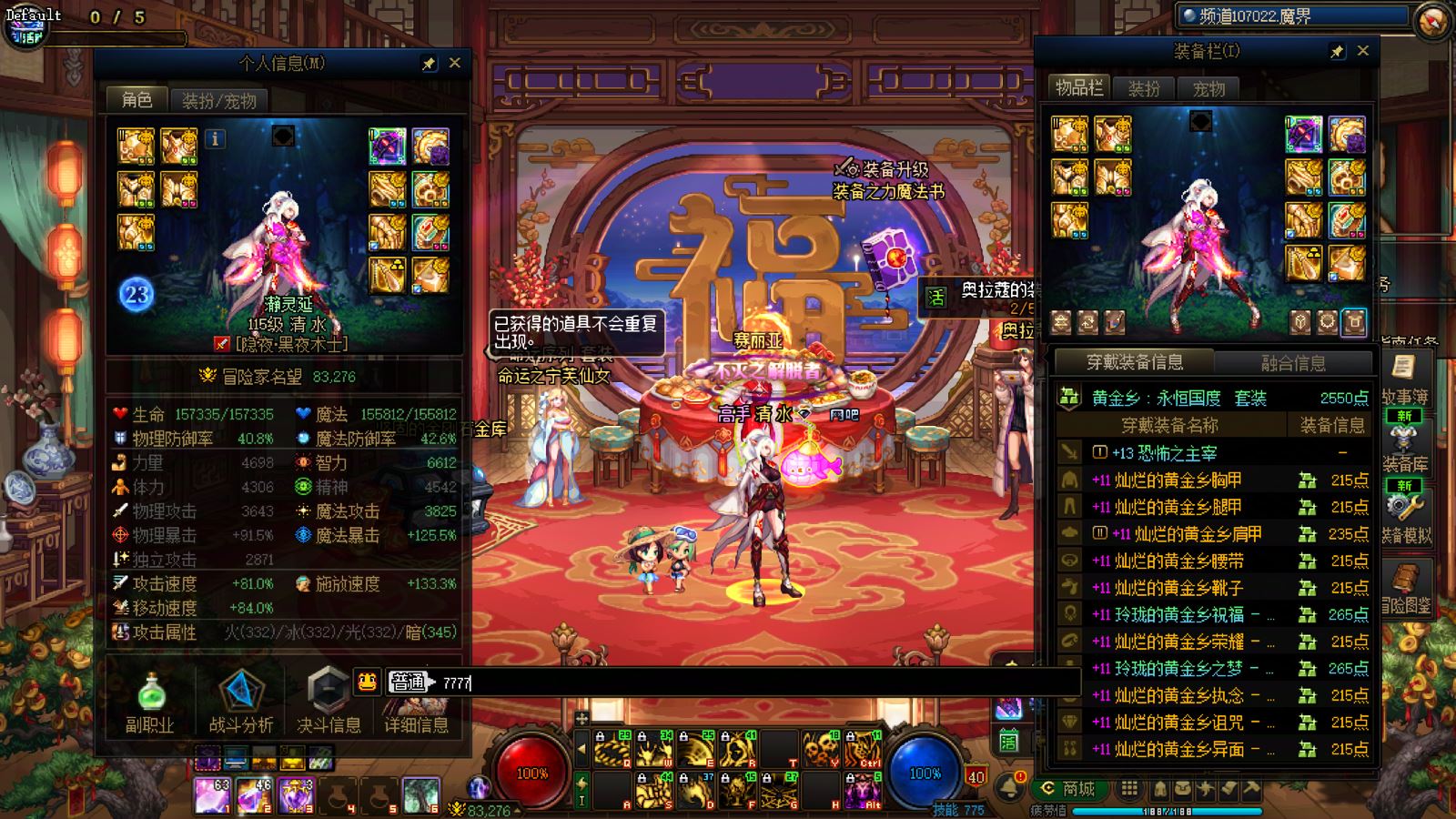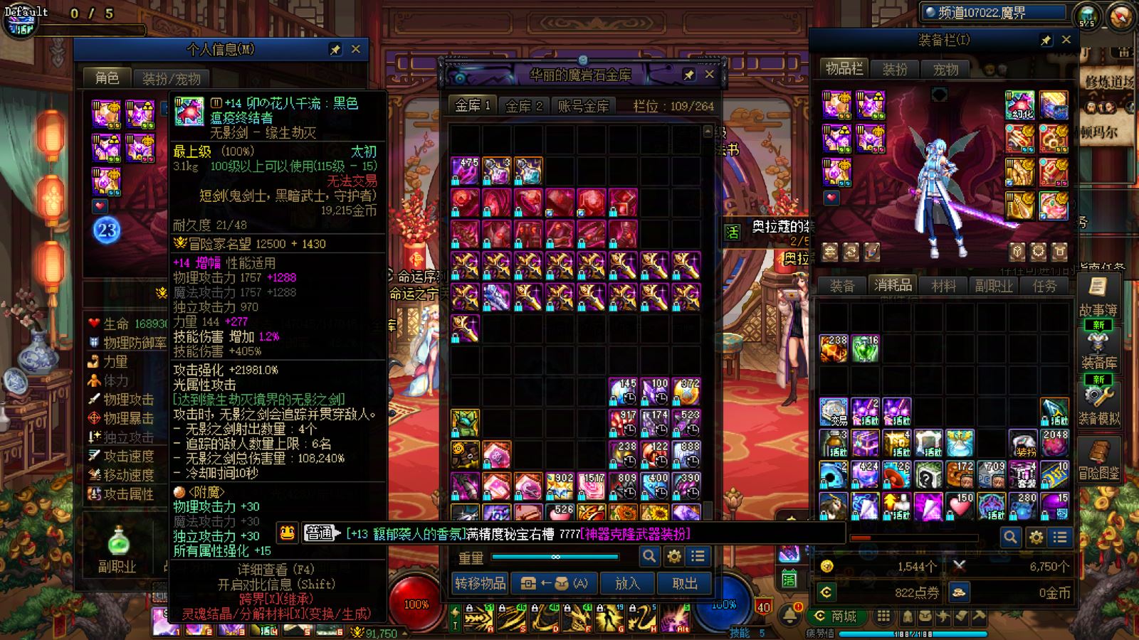 优质商家,置换可优惠!找回包赔!跨三A 西北一区10年套,10套国庆,2龙武,武器耳环红14,全身红13衣柜剑魔,带满精度秘宝右槽价值7000+,附带3个红13 12,4个红12 11,几个红10,金库还有二个红12卷子!红13设计图!附带最新新春收集箱!