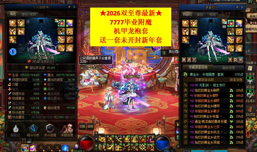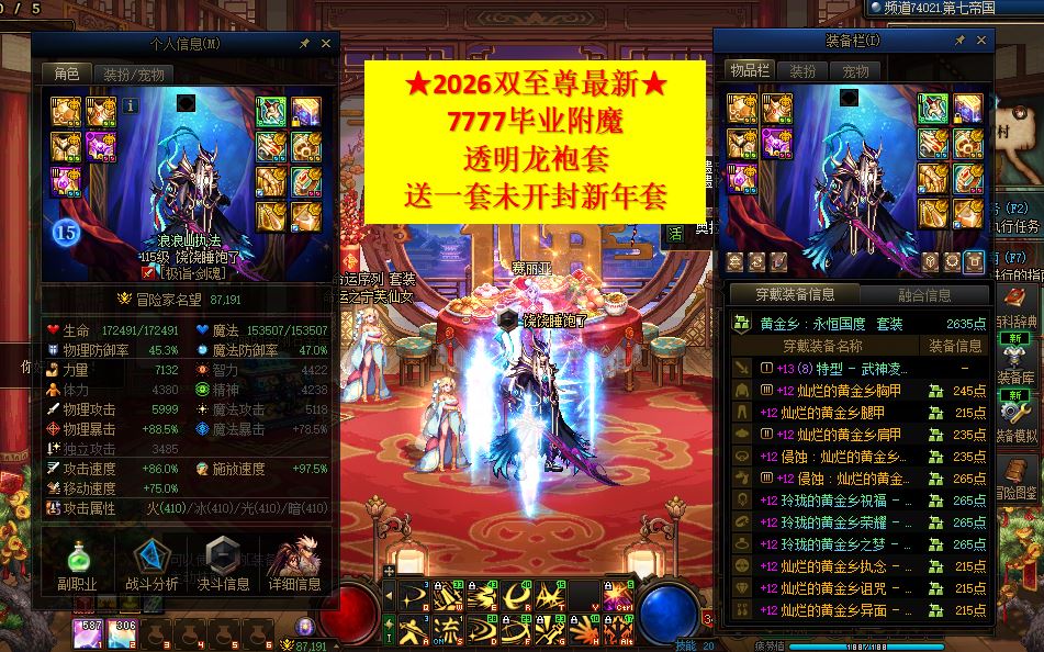 ★两个2026双至尊 8.7名望 红12剑魂 毕业7777附魔★红12剑帝 毕业附魔7777★双幻神连体!送未开封新年套!!手慢无!!