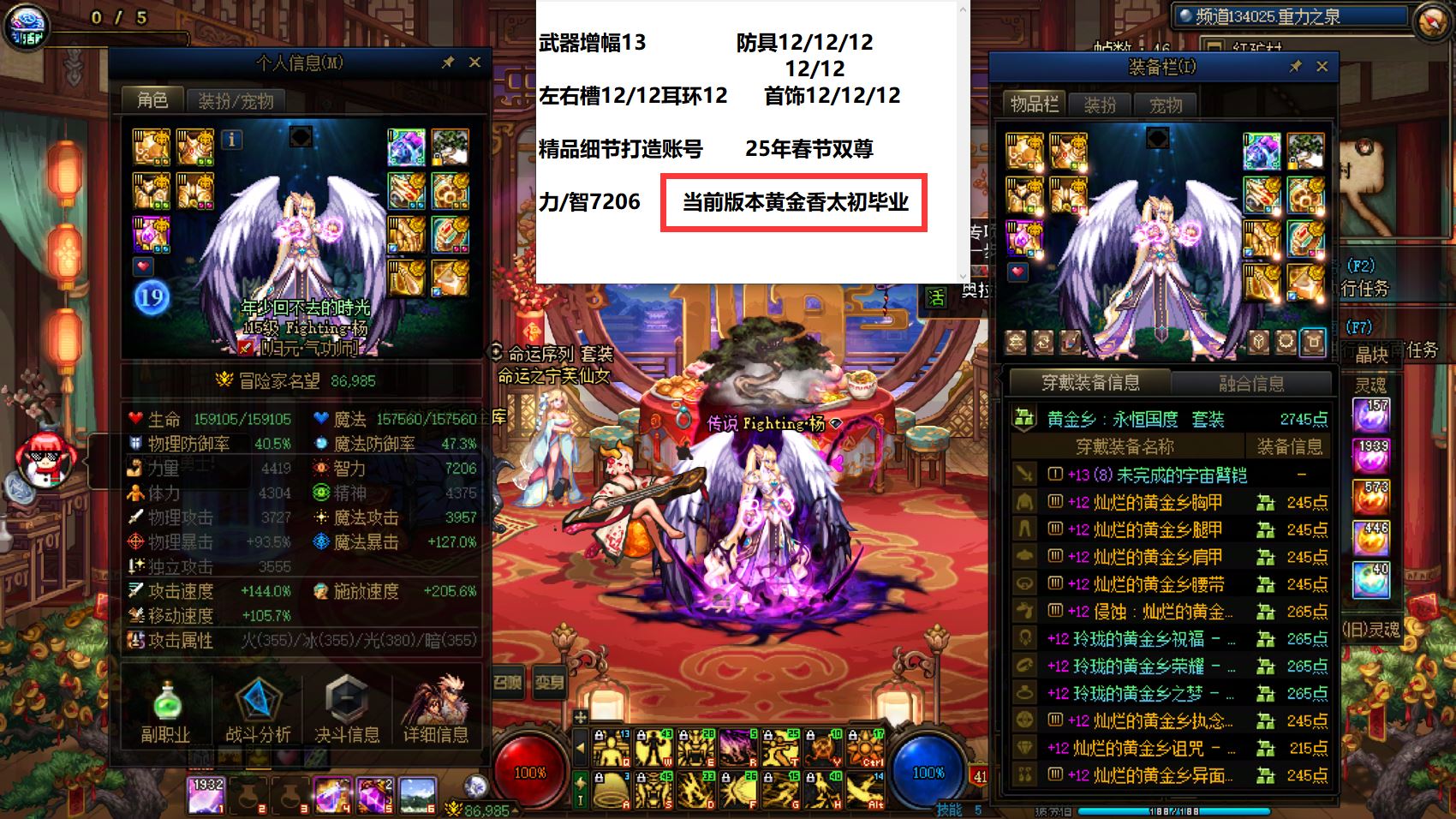32122广东一区【25年双尊+26年春节2套】【收集箱】神器龙武【1个增幅12+5个增幅11+4个增幅10】25年双尊武器增幅13全身完美增幅12黄金香太初毕业女气功+武器耳环13全身11剑魂+全身增幅11修罗+全身11耳环12魔神+全身11两件增幅12奶爸+全身11奶妈!后面还有几个细节打造齐全的增幅10!细节看图!喜欢别错过!!!