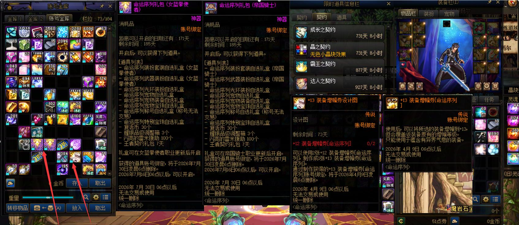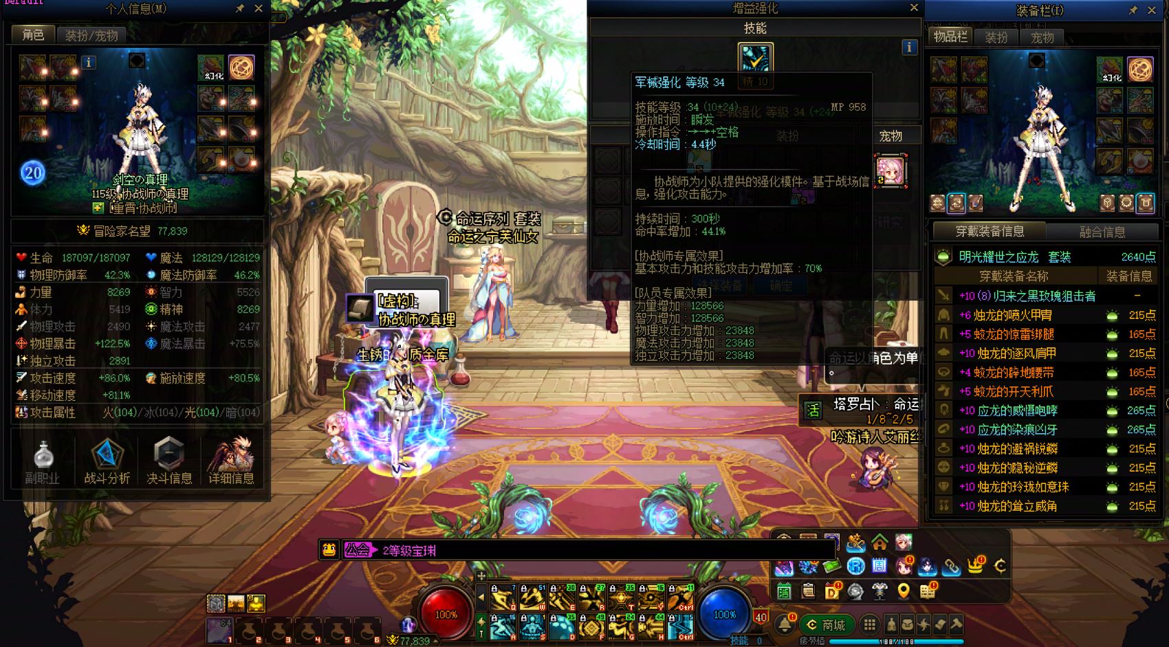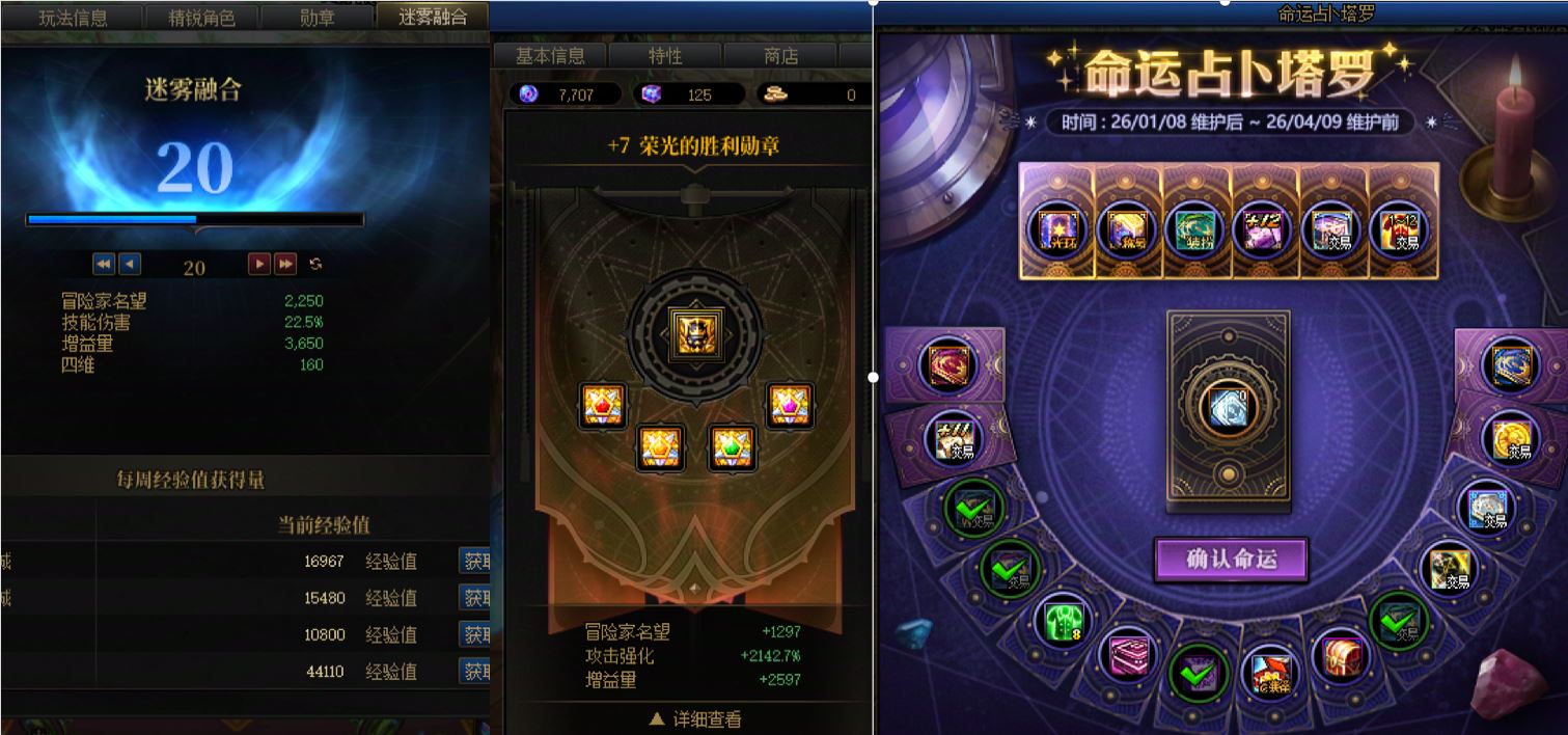 跨7 课 26新春11套,送2套预约礼包价值700元。1个12、1个11、4个10。26双尊红12龙袍阿修罗,8.82w名望,7777技攻,送5.2技攻+3.6攻强玉。23双尊红11龙袍气功,7777技攻,武器14,1件10。红10打造分别是气功、刃影、奶妈、奶枪(差4件)