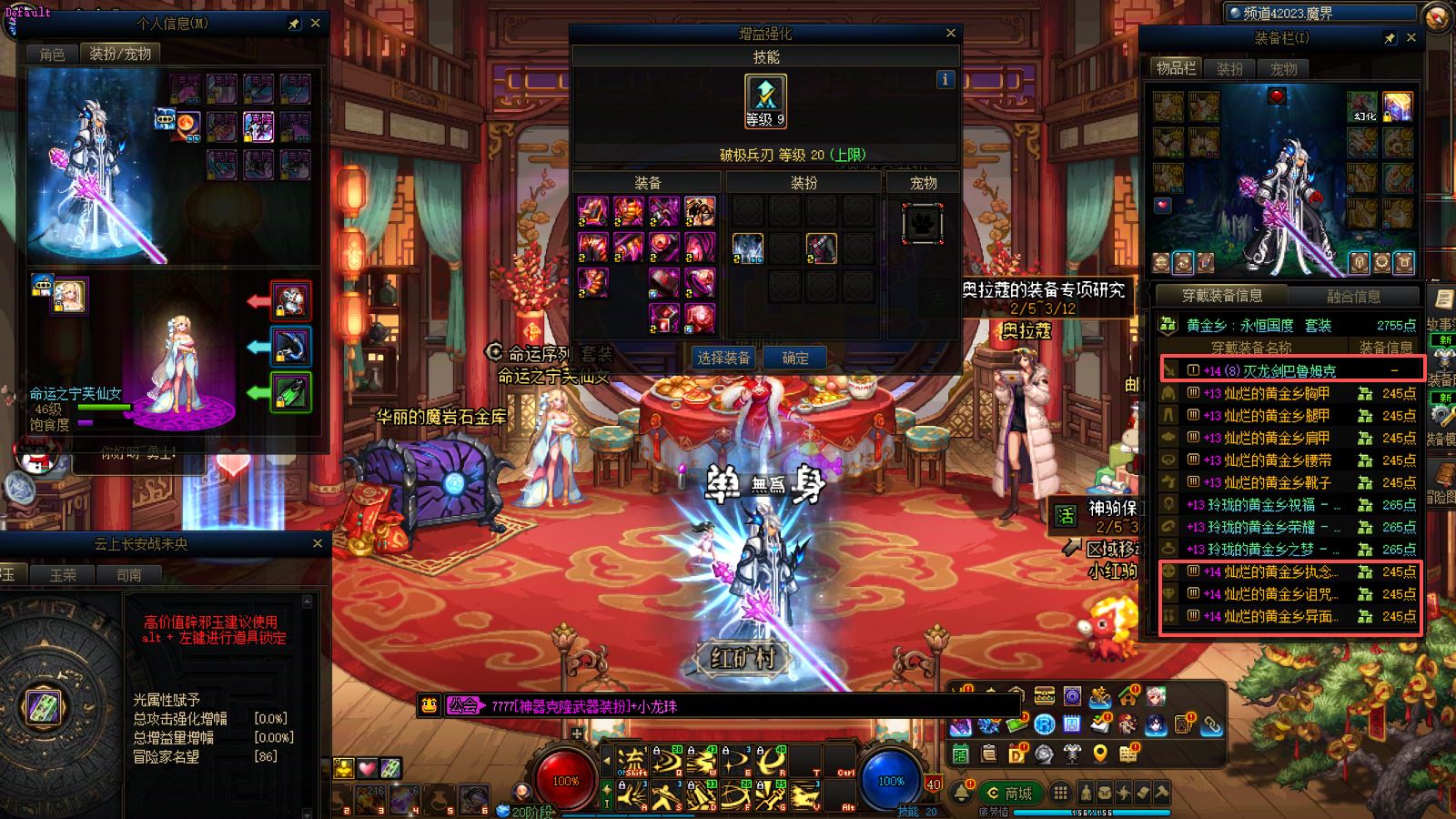 跨6山东2。百亿剑魂小连体。关键部位14超越武器红15打造。【】【红14-13剑魂连体2头红12,5头红11】【武器三槽红14其他红13+龙武】【红12带4件红13女漫游】【红12武器13气功】【红11剑帝,红11魔神,红11刃影,红11帕拉丁,红11四姨】