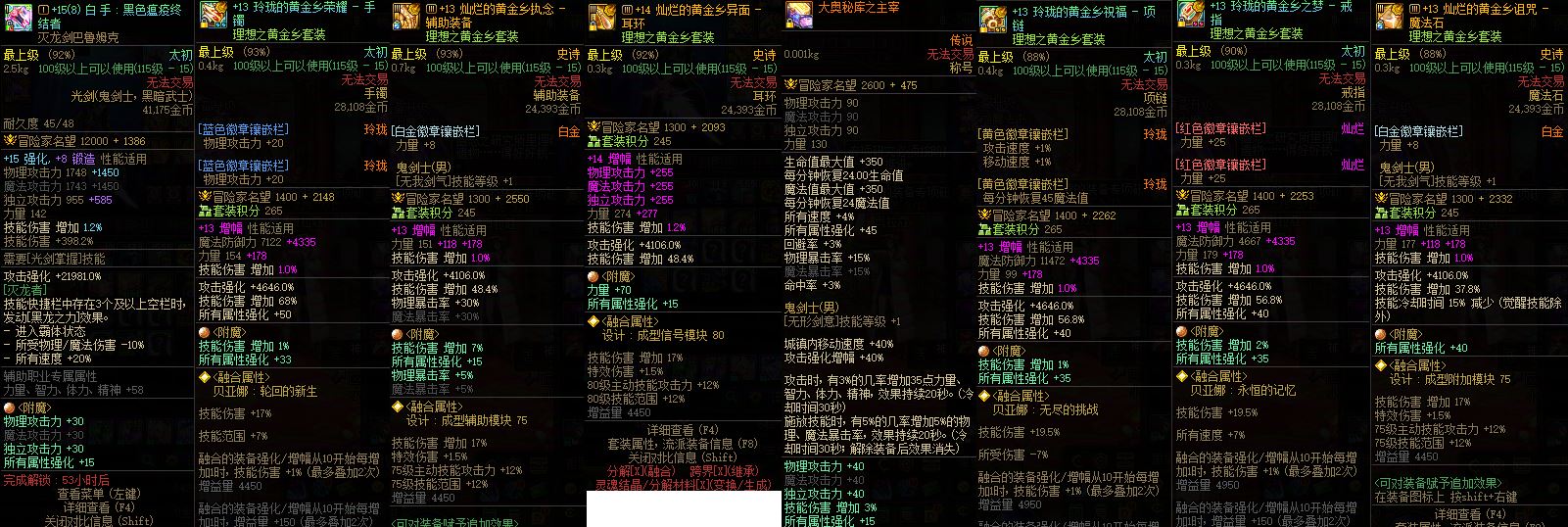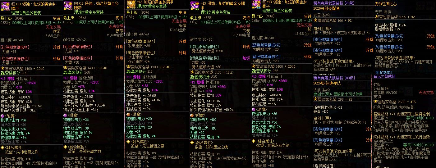 4945湖南5【有爱可谈】【最新10套26年春节,小世界光环,15武器红14耳环完美13剑魂➕红13魔神➕红13.12鬼泣➕红12.11旅人➕13武器半身12男气功】
