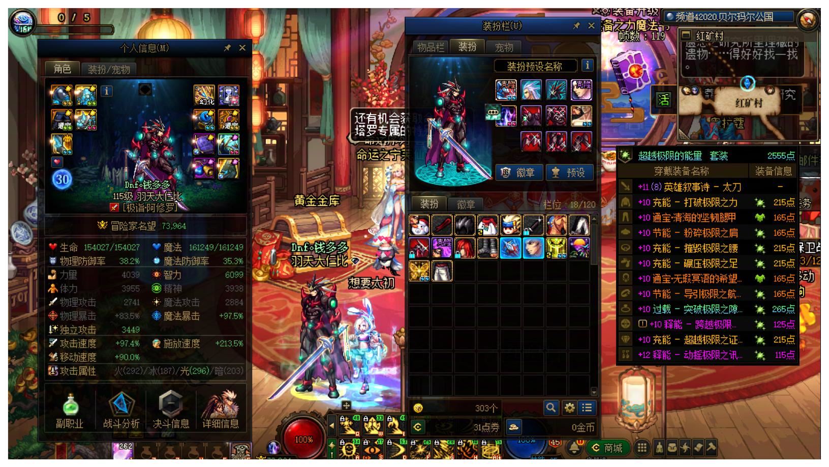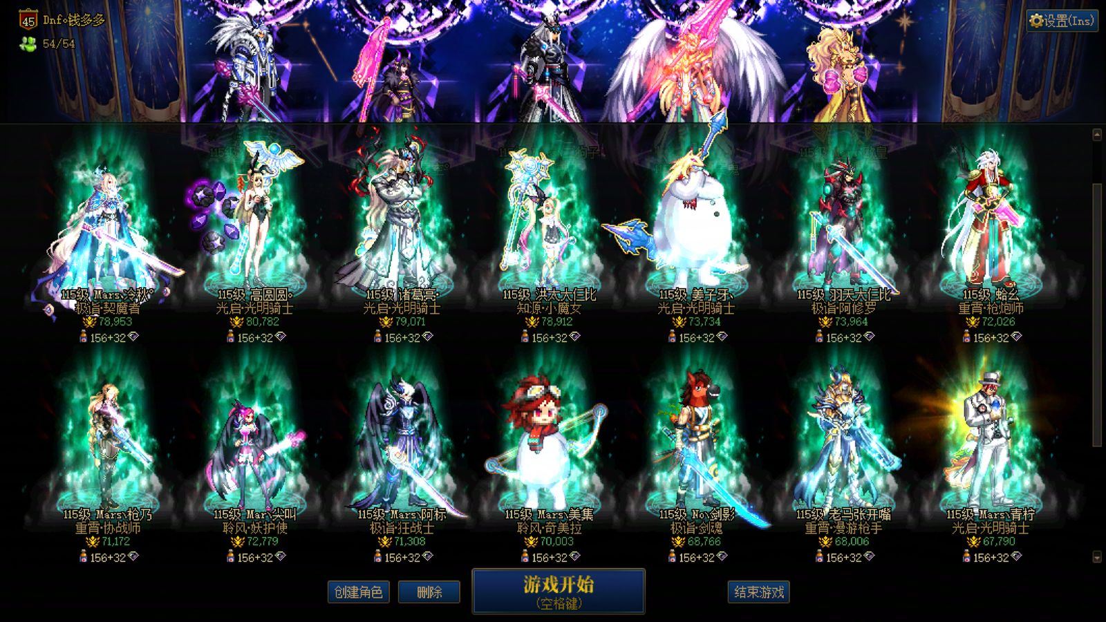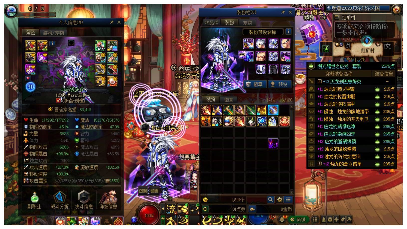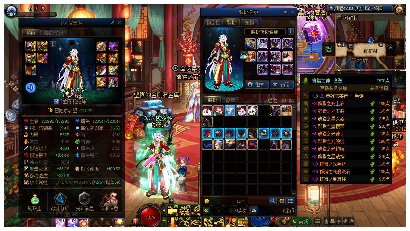 【稀有!罕见!极品!】【全号23把+13以上武器!】山东二区【15套国庆10套新春!】【适合神级肝帝的超大连体】54个全角色能搬砖,都有漂亮光环!26年双尊,武器耳环红13其他红12狂战士!武器+14,全身红12旧双尊冰结师!带5个全身红11-12,剑魂/关羽/女气功/男气功/阿修罗!以及22个红10-12小号,刃影/剑帝/男大枪X2/死灵/旅人/刺客/女弹药/鬼泣/男散打/男漫游/佣兵/合金/剑魔/奶妈/奶爸X2/小魔女//阿修罗/协战师/妖护使/猎人!错过可惜
