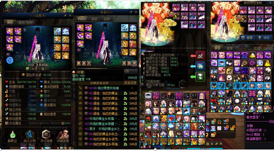 跨七良双14-15精品带一个13-14 3个12-13 3个11剑帝全身14武器耳环15完美细节+衣柜绯樱镜花水月黒压升级+秘宝左槽没玉232E剑魂全身14武器15细节完美+各种好看时装黑牙升级没玉165E漫游全身12-13武器15+好看时装模拟没玉116E奶萝全身13左右槽14细节完美+奶尊+大衣柜气功武神全身12武器耳环13+衣柜 可二次找回负责