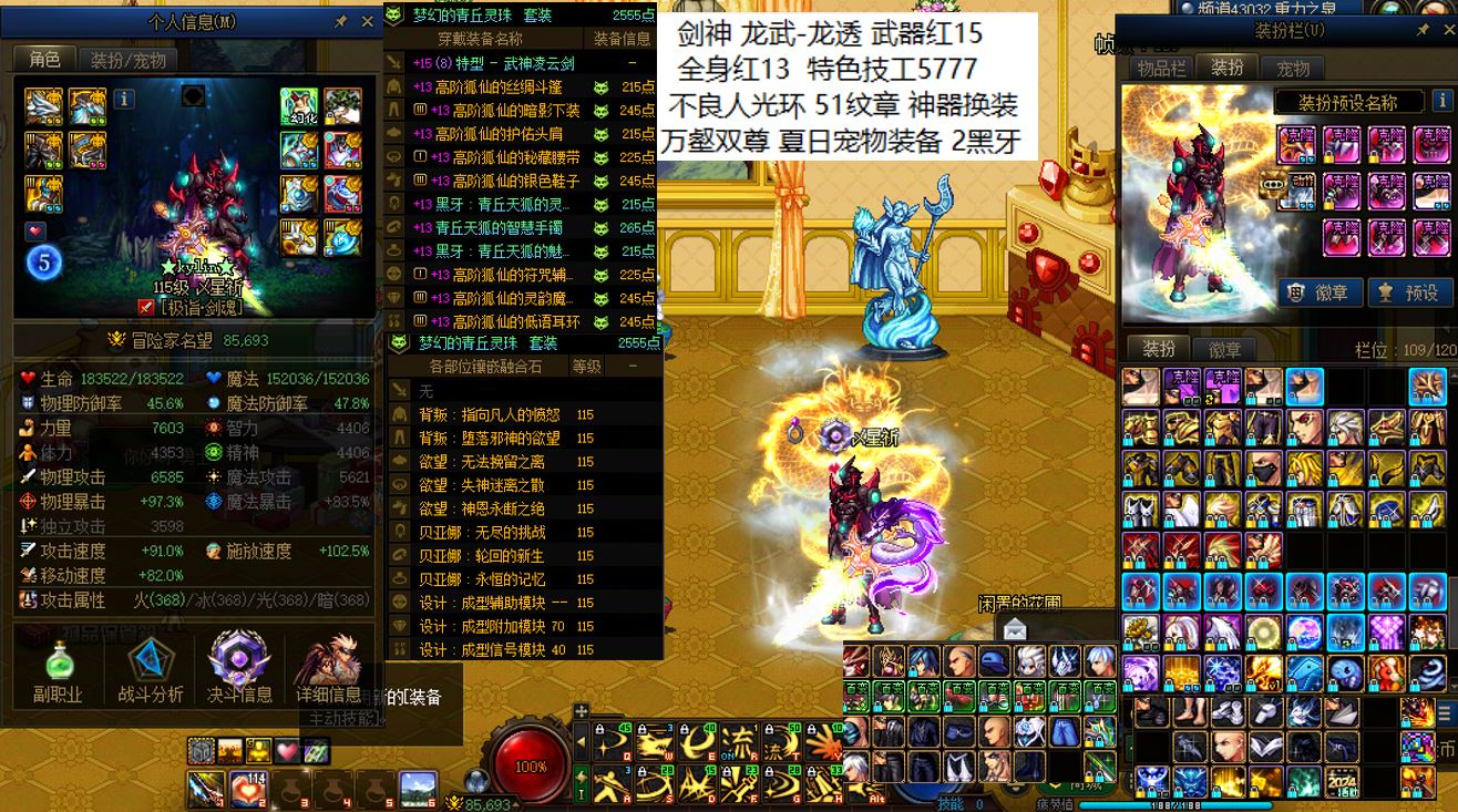 跨6 两把红15武器 剑神缪斯连体 【10套万壑 2个龙武 2套国庆宝珠】好玩不累 上手即玩【全身红13 武器红15 龙武龙透 万壑双尊 国庆7技工 剑神】【全身红13 武器红15 特殊3件红14 龙武龙透 奶尊宠物 国庆增益2宝珠 缪斯】 【全身红11 武器耳环红13 龙透 配备2.4技工玉 混沌魔灵】【全身红11 武器红13 女机械】【全身红11 左右槽红12 光翼龙袍 奶妈】 商家自带包培服务 无需另外购买