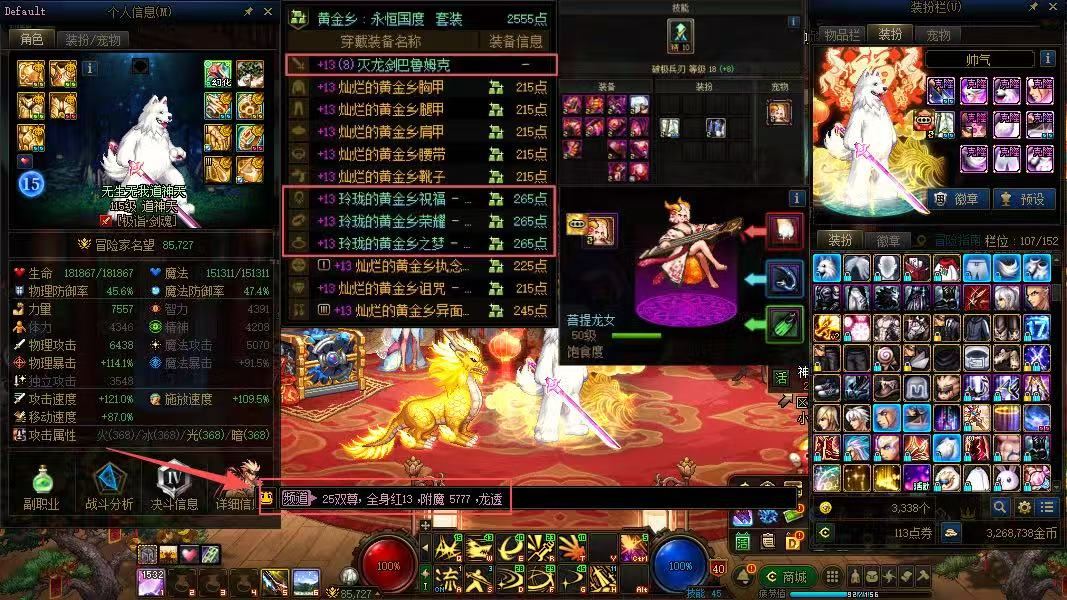 bh【跨一】(红13剑魂,灭龙剑)(25年10套年套,8套51礼包,最新国庆1套)【剑魂25双尊,红13,灭龙剑,特色5777,龙透,衣柜105件】+【剑帝14武器,红12-11】【缪斯红11,龙袍,25奶尊宠】+
