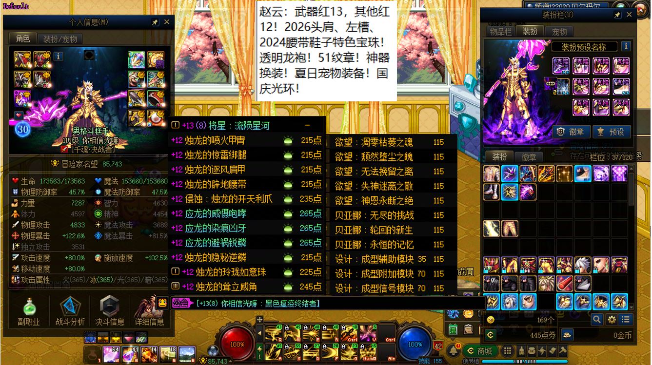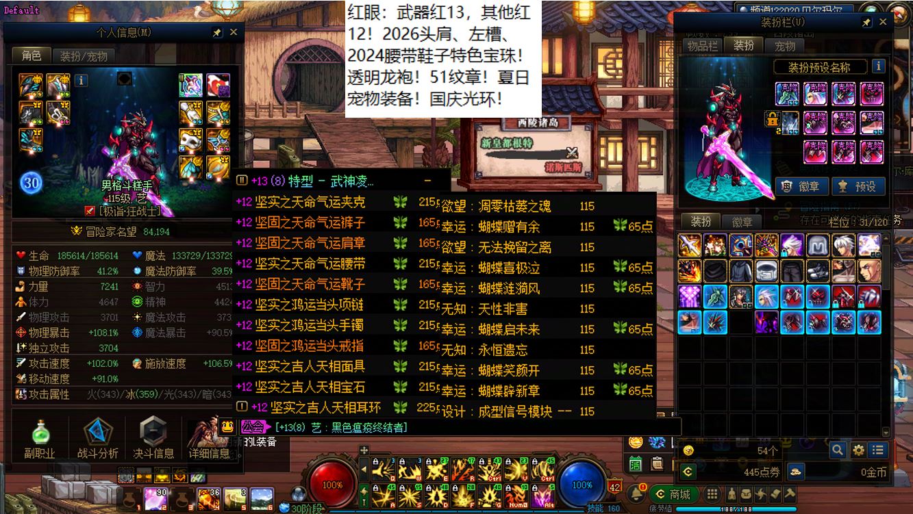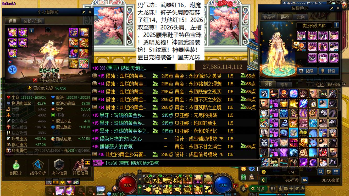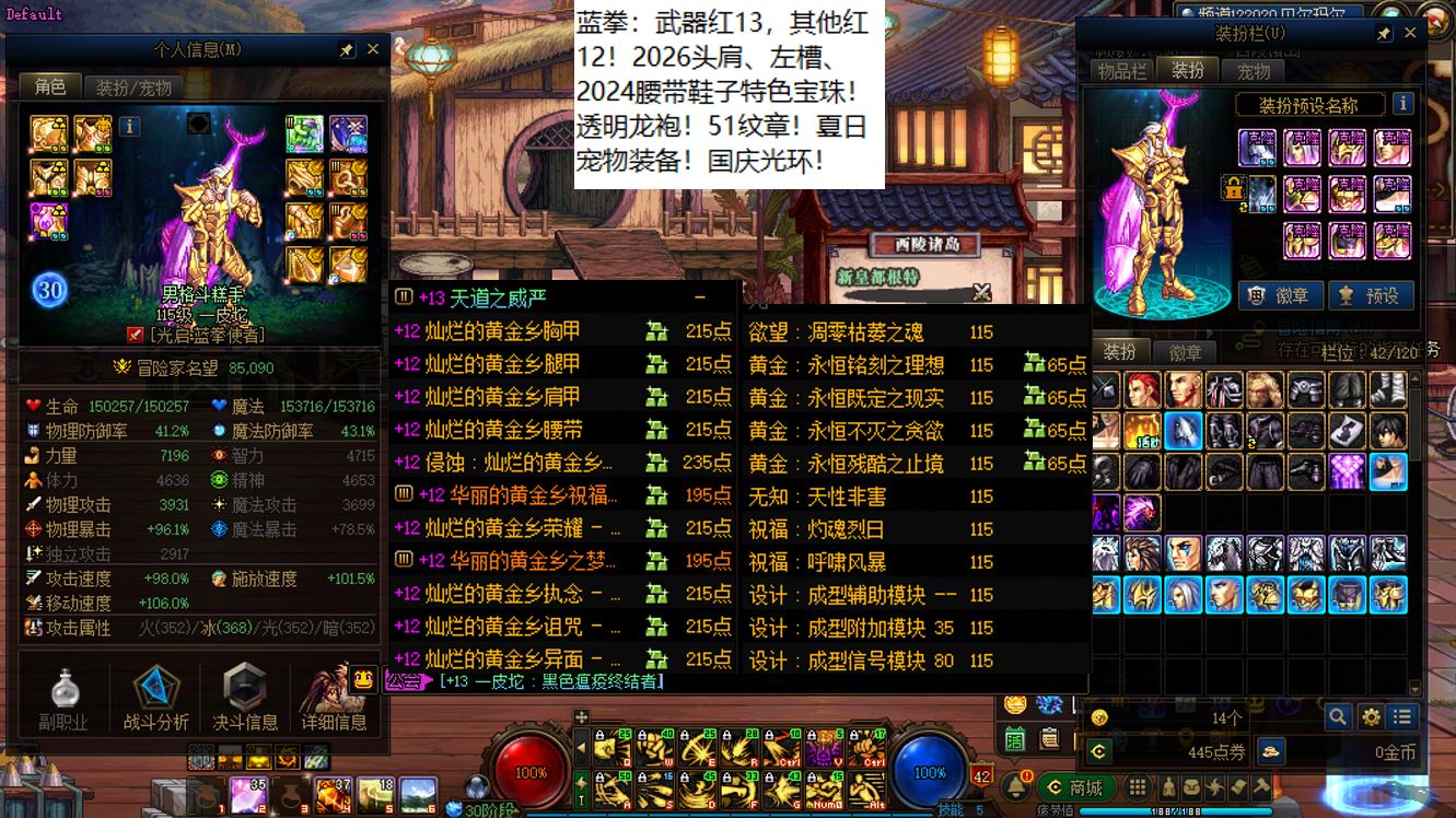 国服前三打造念皇大连体,坐标跨三b西南1区,【五颗大龙珠+4个神武+十把金色武器】【此价格不带秘宝右槽】【武器红16,准全身红15】念皇【野猪毕业武器+左曹秘宝+黑牙】+4个红15武器全身红13打造角色【剑神+念帝+旅人+战法】+5个武器白15全身红12-13【特工+乌鸡+剑帝+男街霸+男柔道】+半身红13奶爸+14个红12-13打造角色【武器红13赵云+武器红13暗枪+武器红13男漫游+武器红13蓝拳+武器红13女漫游+武器红13帕拉丁+武器红13奶萝+武器红13奶枪+武器红13魔神+武器耳环红13忍者+武器红13妖护使+武器红13团长+武器红13武神+武器红13风法】,【已买30套2026年套】,【柳梢听得黄鹂语,此是春来第一声】,序号250383