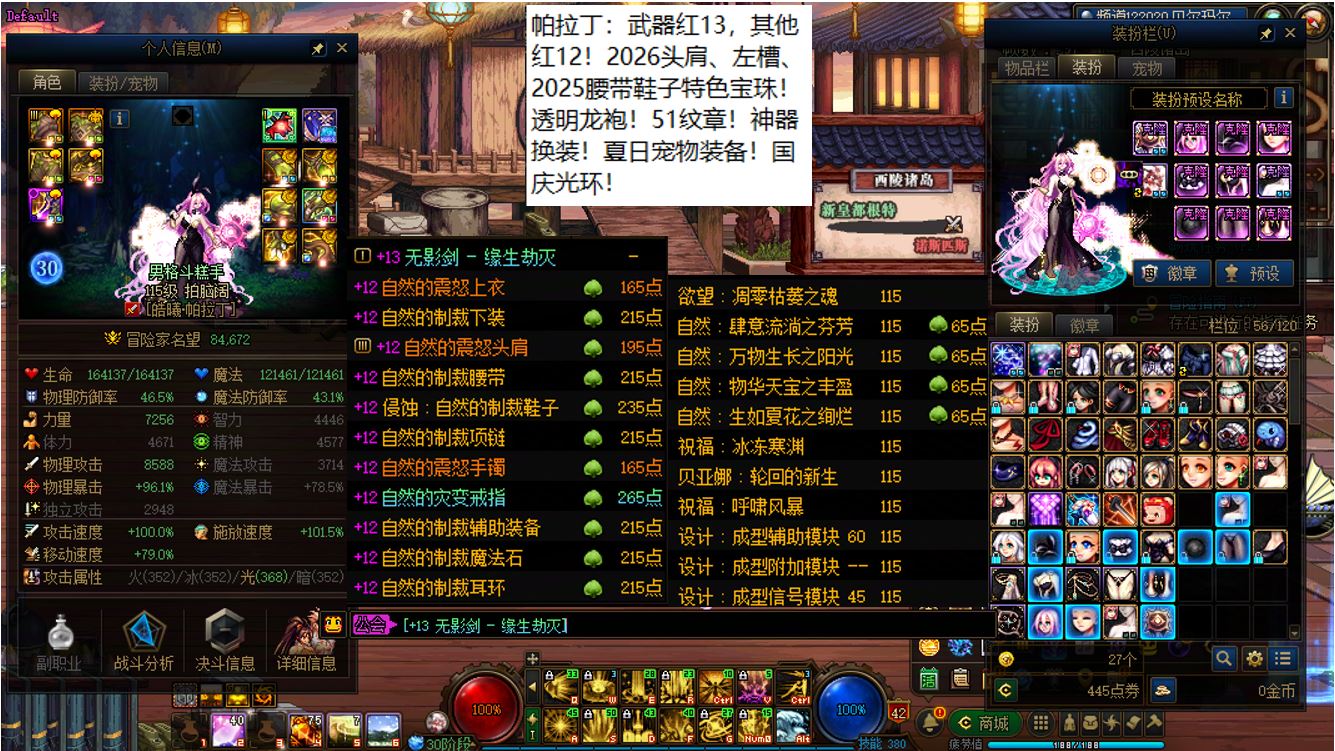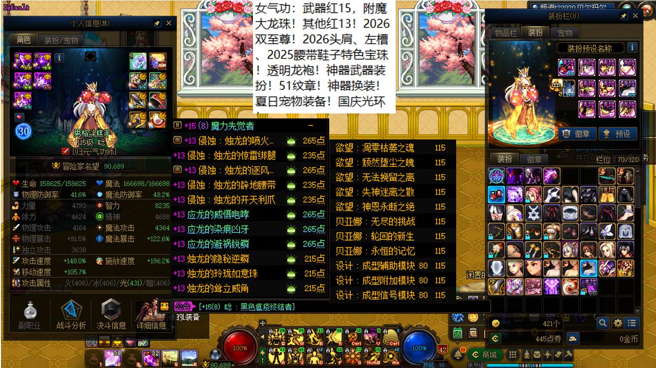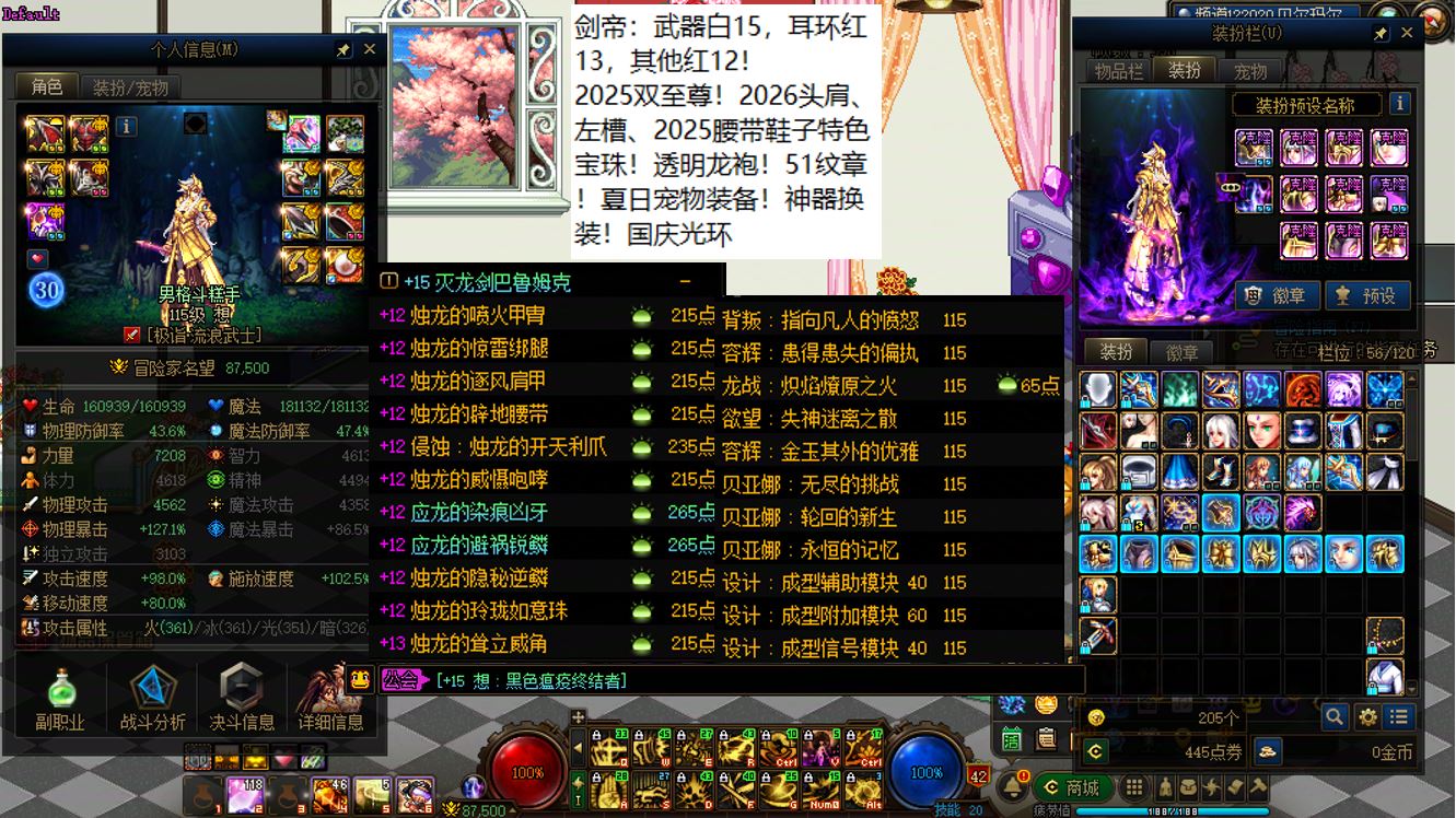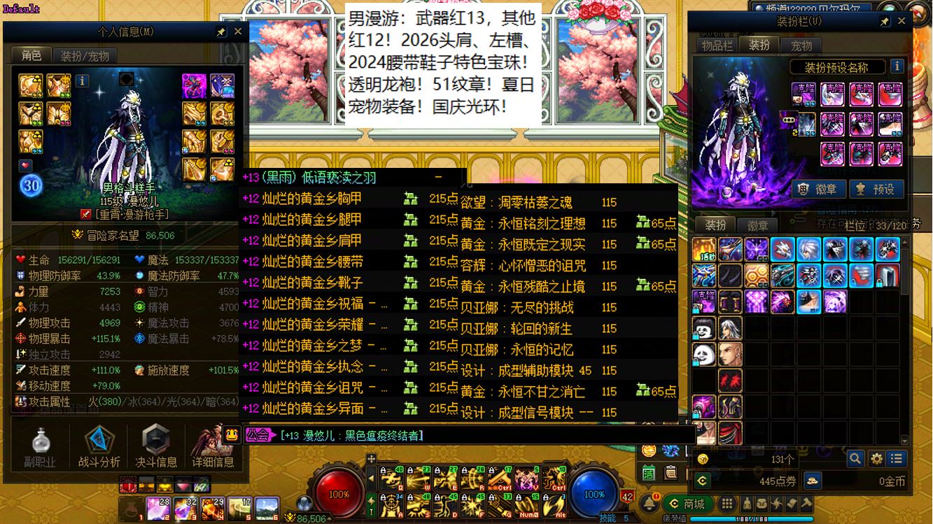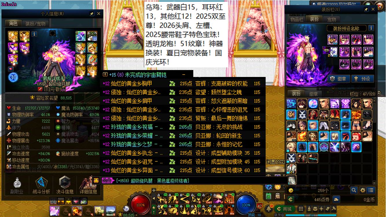 国服前三打造念皇大连体,坐标跨三b西南1区,【五颗大龙珠+4个神武+十把金色武器】【此价格不带秘宝右槽】【武器红16,准全身红15】念皇【野猪毕业武器+左曹秘宝+黑牙】+4个红15武器全身红13打造角色【剑神+念帝+旅人+战法】+5个武器白15全身红12-13【特工+乌鸡+剑帝+男街霸+男柔道】+半身红13奶爸+14个红12-13打造角色【武器红13赵云+武器红13暗枪+武器红13男漫游+武器红13蓝拳+武器红13女漫游+武器红13帕拉丁+武器红13奶萝+武器红13奶枪+武器红13魔神+武器耳环红13忍者+武器红13妖护使+武器红13团长+武器红13武神+武器红13风法】,【已买30套2026年套】,【柳梢听得黄鹂语,此是春来第一声】,序号250383