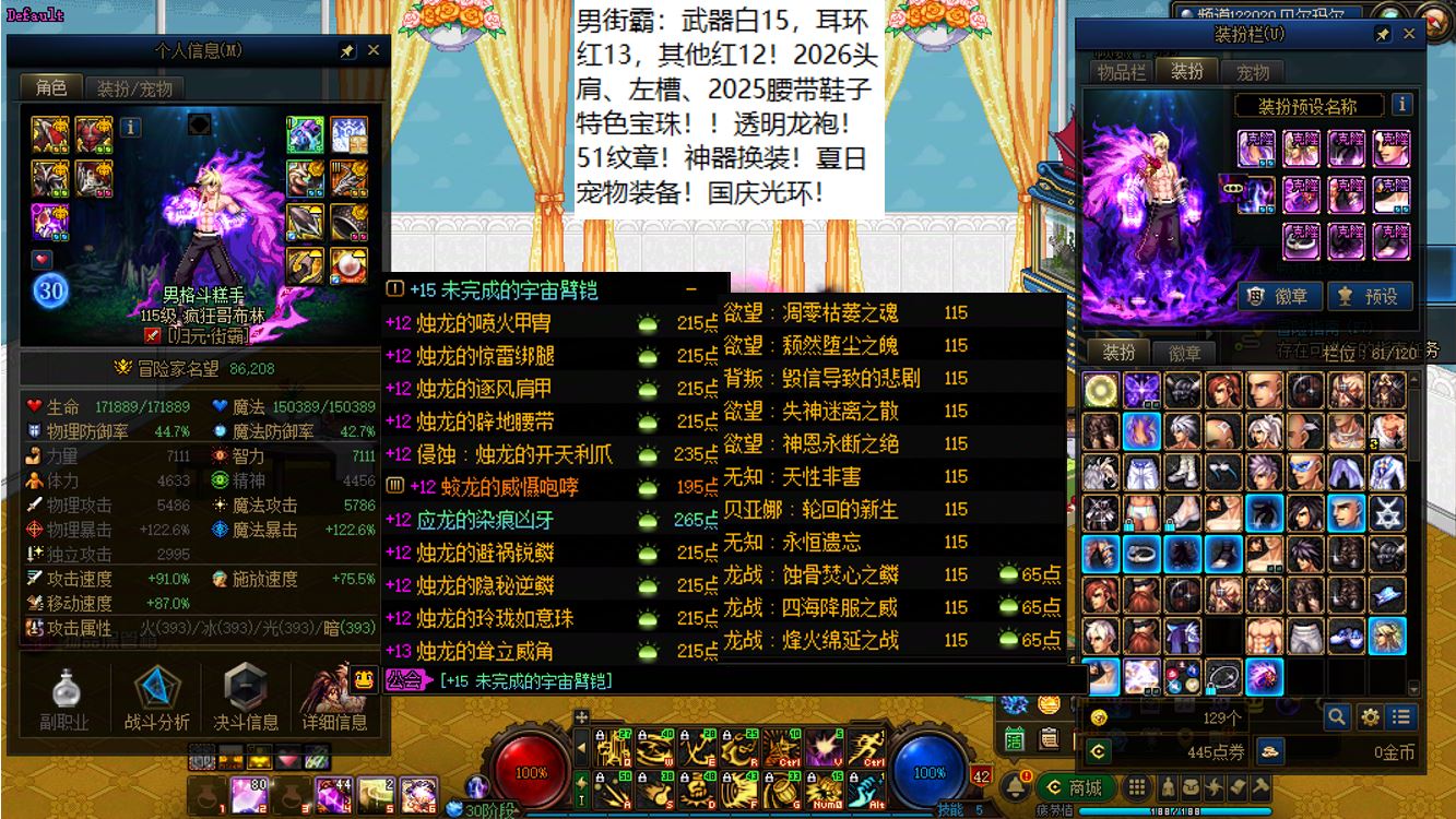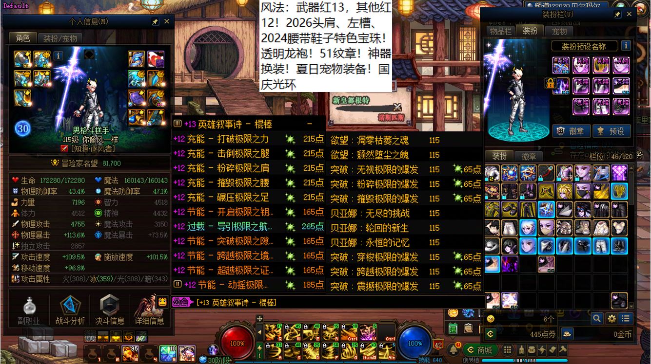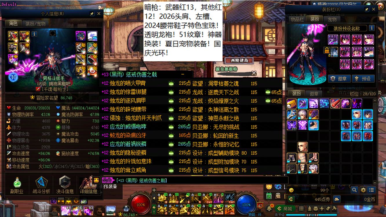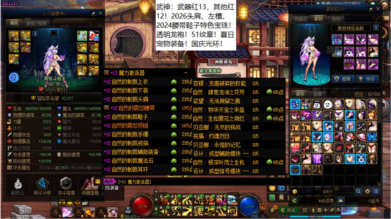 国服前三打造念皇大连体,坐标跨三b西南1区,【五颗大龙珠+4个神武+十把金色武器】【此价格不带秘宝右槽】【武器红16,准全身红15】念皇【野猪毕业武器+左曹秘宝+黑牙】+4个红15武器全身红13打造角色【剑神+念帝+旅人+战法】+5个武器白15全身红12-13【特工+乌鸡+剑帝+男街霸+男柔道】+半身红13奶爸+14个红12-13打造角色【武器红13赵云+武器红13暗枪+武器红13男漫游+武器红13蓝拳+武器红13女漫游+武器红13帕拉丁+武器红13奶萝+武器红13奶枪+武器红13魔神+武器耳环红13忍者+武器红13妖护使+武器红13团长+武器红13武神+武器红13风法】,【已买30套2026年套】,【柳梢听得黄鹂语,此是春来第一声】,序号250383