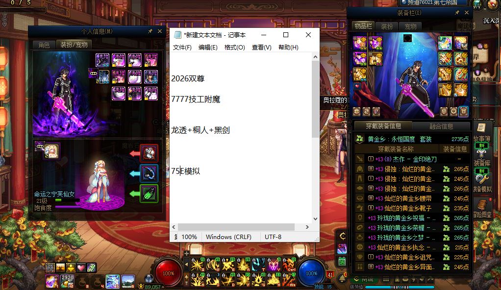 A亲Y ID 收集箱满 勋章+12 迷雾等级22 【2026双尊全身红13完美附魔 模拟75E魔神】 附带11个全身增幅11以上的小号 【全身红11 剑魂 瞎子 鬼泣 女气功 剑帝 男气功 刃影 男大枪 男散打 奶妈 奶爸】 大号附魔7777 小号附魔 7557 支持置换 可分期 不玩包回收