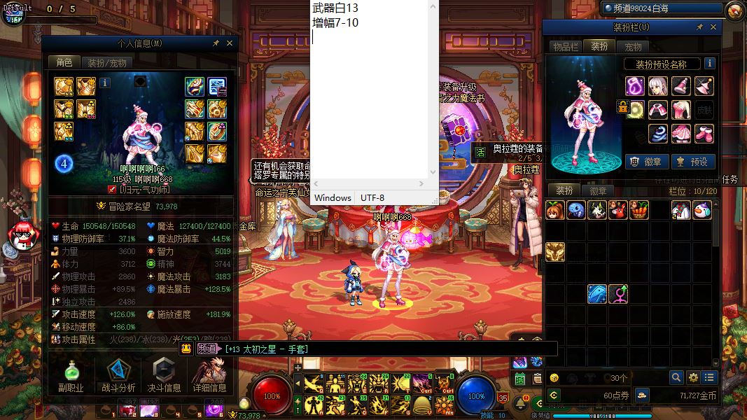 32050-广西1区-精品新玩家入坑首选纯白无任何制裁可C可搬砖全能战士自给自足【0阶破凶云上大舞台有梦你就来分分钟湖北】【4个5-7w名望妖气未央C/6个满级角色】【三黄金乡首饰女气功】【1把13武器】【3把12武器】【3套天空】【武器白12增幅10天空旅人】+【武器白13增幅7-10女气功】+【增幅7-10透明天空阿修罗】+【增幅3-8阿修罗】+【12武器暗帝】+【12武器阿修罗】+【天空缪斯】