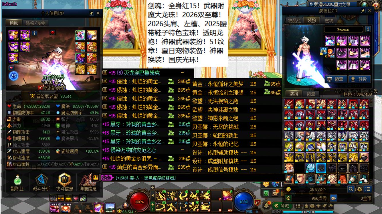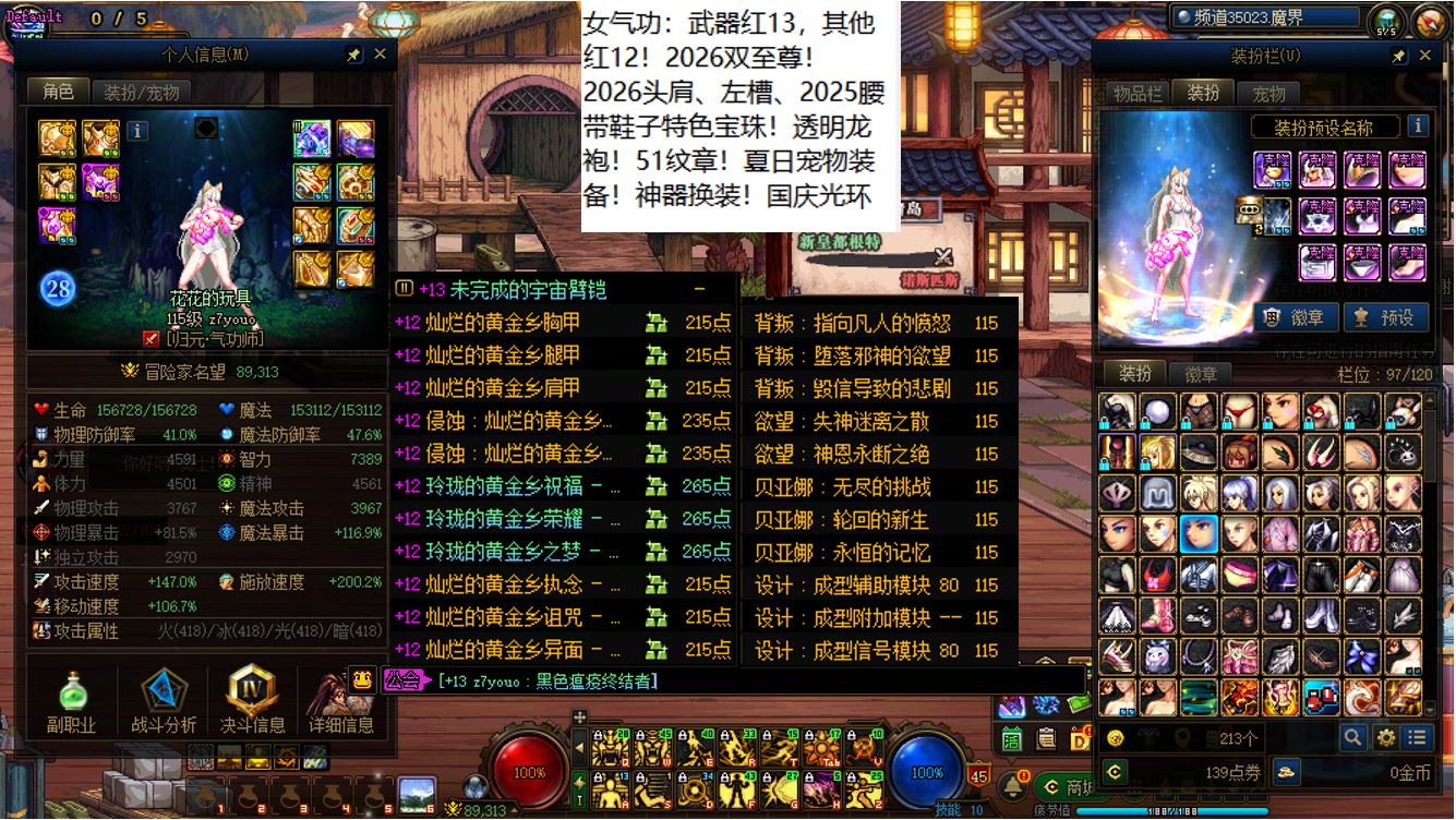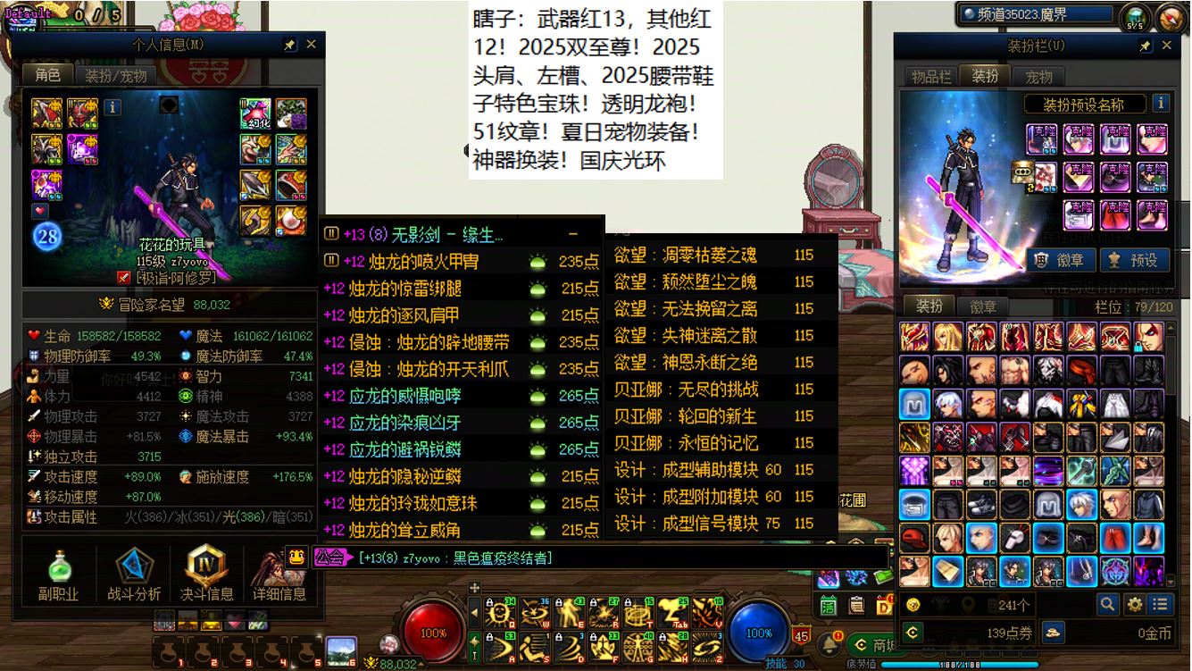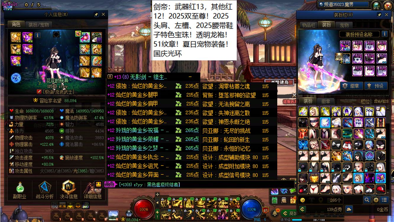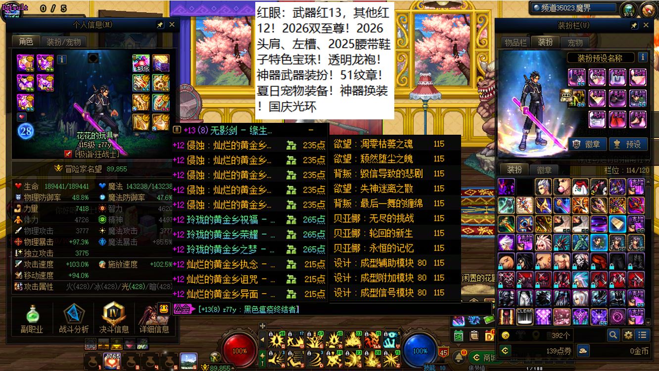 跨六东北2区,全身红15剑神+4个红12-13+8个红11-12打造角色!【已买30套2026年套】【手提三尺龙泉剑,不斩奸邪誓不休】,剑神【大龙珠+神武+左曹秘宝+心剑+大衣柜】+4个红12-13打造角色【武器红13神武魔神+武器红13女大枪+武器红13天帝+武器红13剑帝】,序号250385